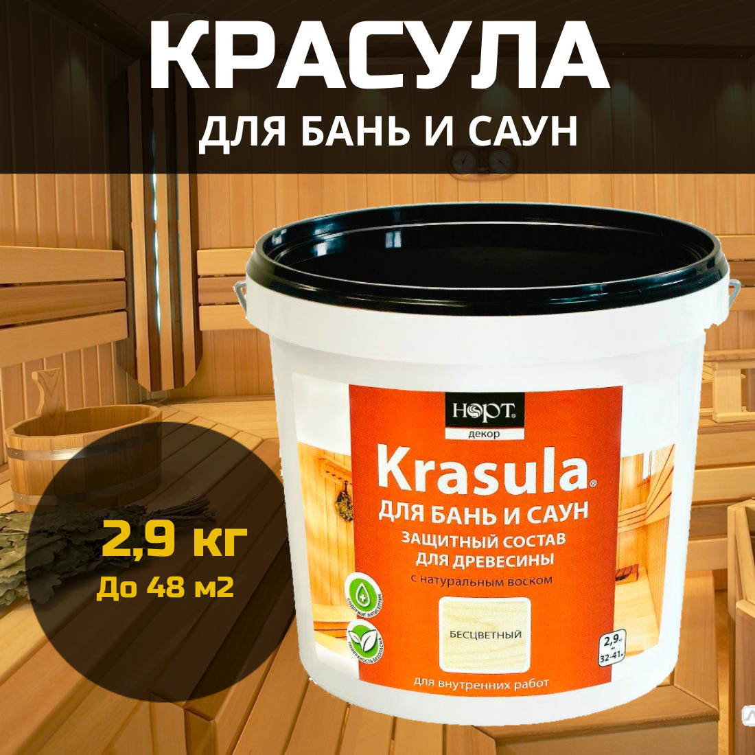 Krasula 2.9 л, Красула для бань и саун, защитно-декоративный состав пропитка для древесины интересное: