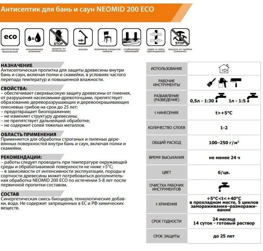 Неомид 200 Антисептик для бань и саун 1:5 (1л) / NEOMID 200 Антисептик для бань и саун 1:5 (1л)