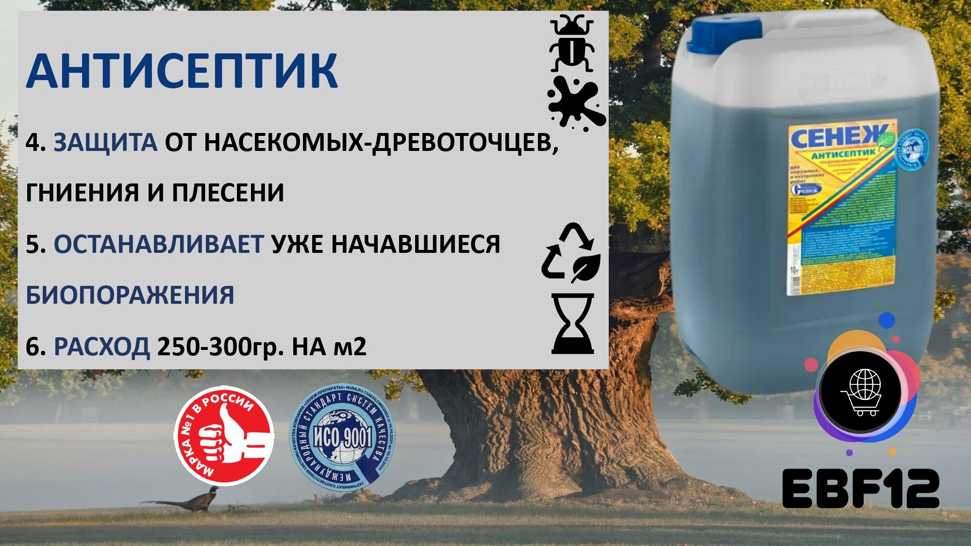 Сенеж экобио Экономичный бесцветный антисептик для помещений и деревянных конструкций под навесом. Канистра 5 кг.