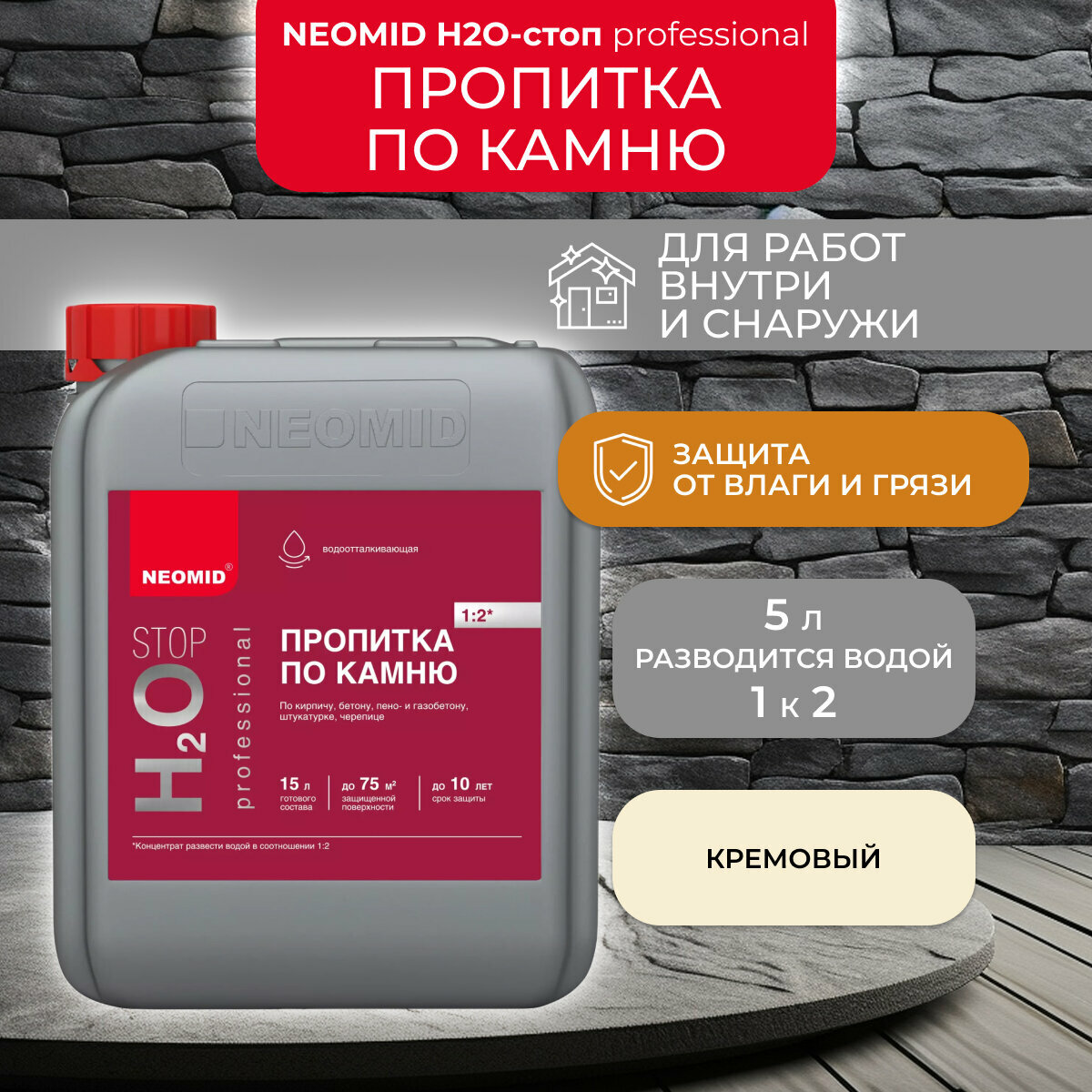 NEOMID H2O STOP / неомид H2O стоп пропитка по камню водогрязеотталкивающая концентрат 1:2 1 л
