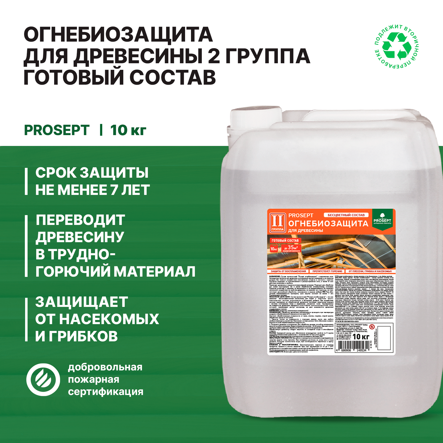 Купить Prosept Огнебио Prof - огнебиозащита для древесины, 2-ая группа Готовый состав 10л 006-10 .