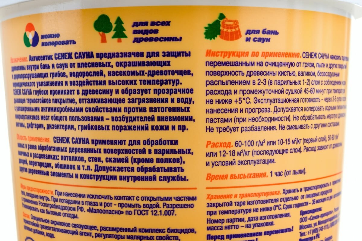 Сенеж сауна Антисептик для бань и саун со специальным антимикробным эффектом на акрилатной основе. Ведро массой нетто 2,5 кг.