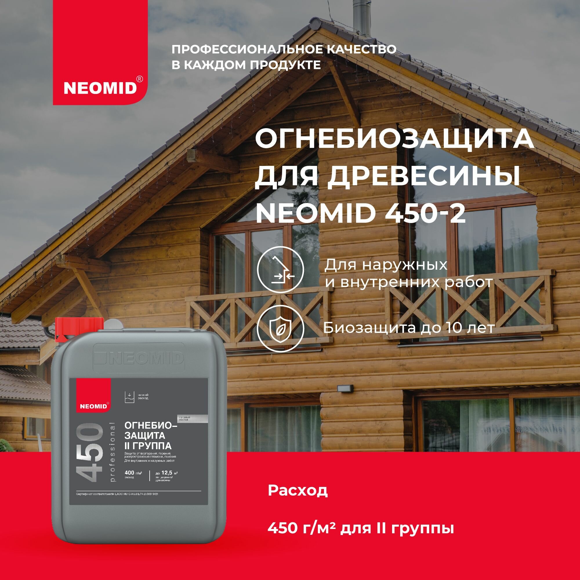 Огнебиозащитный состав для дерева Neomid 450, 2 группа, 10 кг