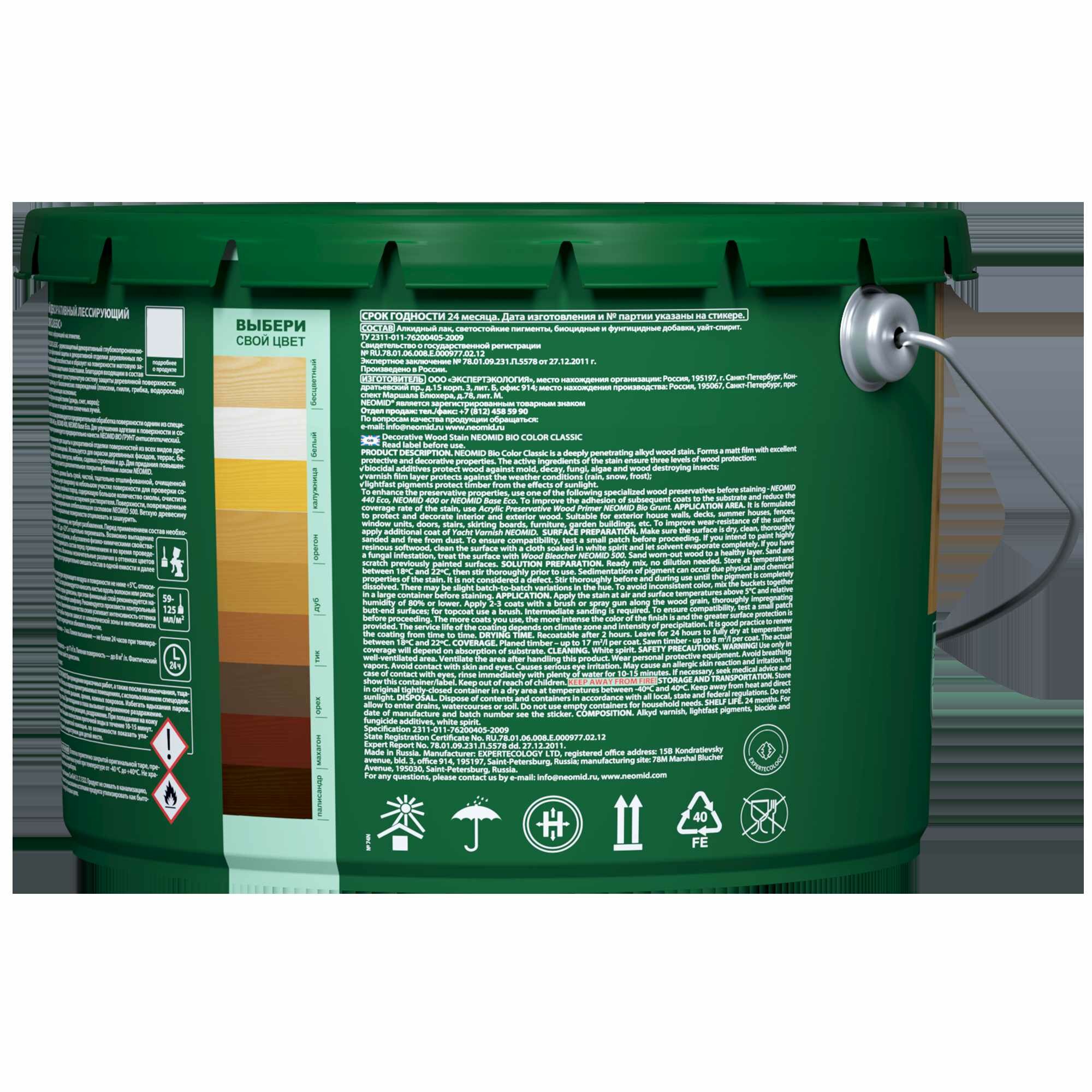 NEOMID BIO COLOR CLASSIC защитная декоративная пропитка на алкидной основе, белый (2.7 л)