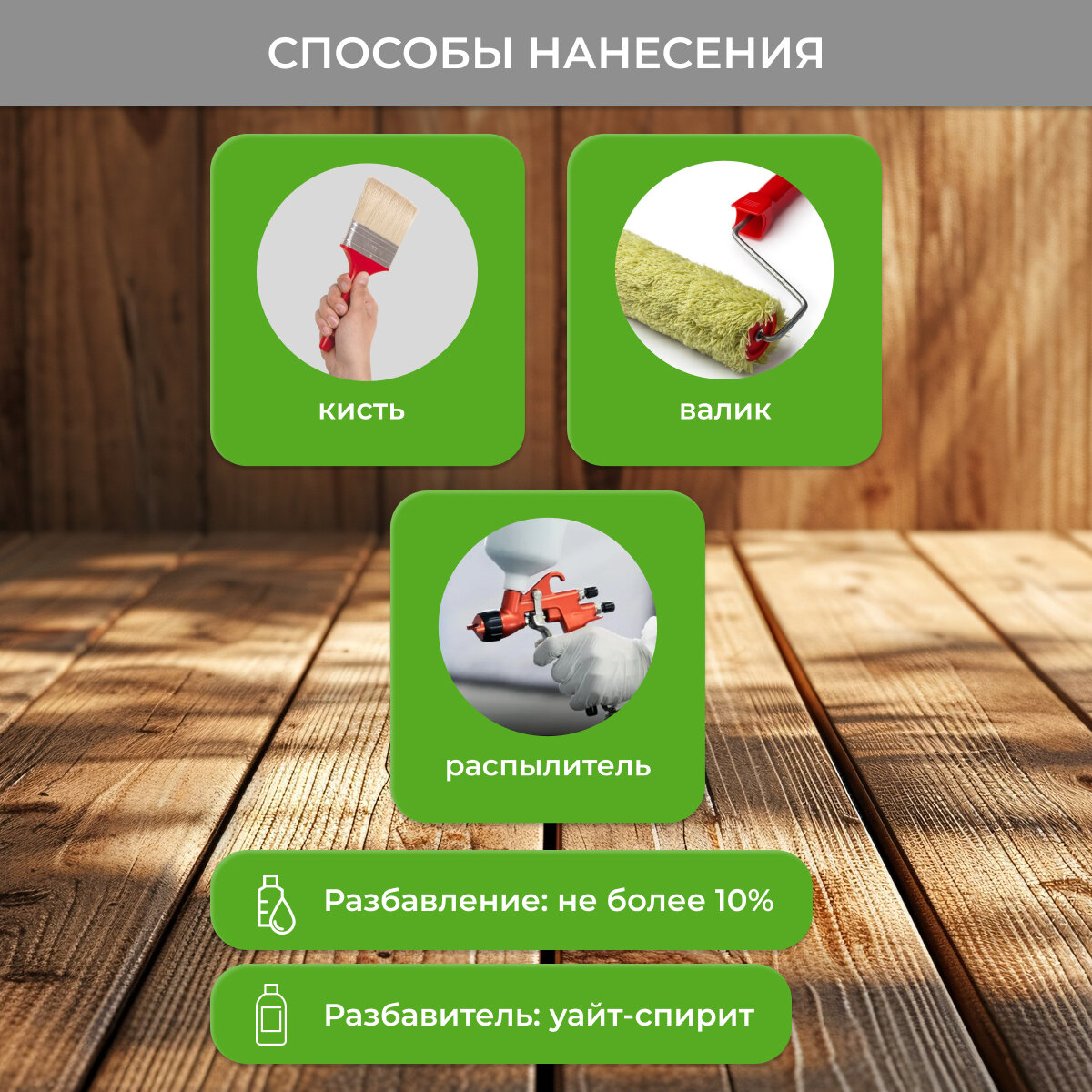 | Особенности | УФ-защита, быстросохнущая, водозащитная, декоративная, для использования в бане/сауне, морозостойкая, с антисептиком |
