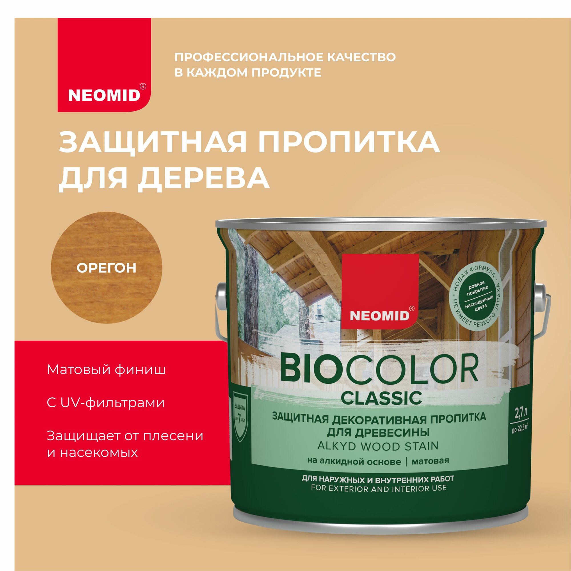 Купить NEOMID BIO COLOR CLASSIC защитная декоративная пропитка на алкидной основе, орегон (2,7л)