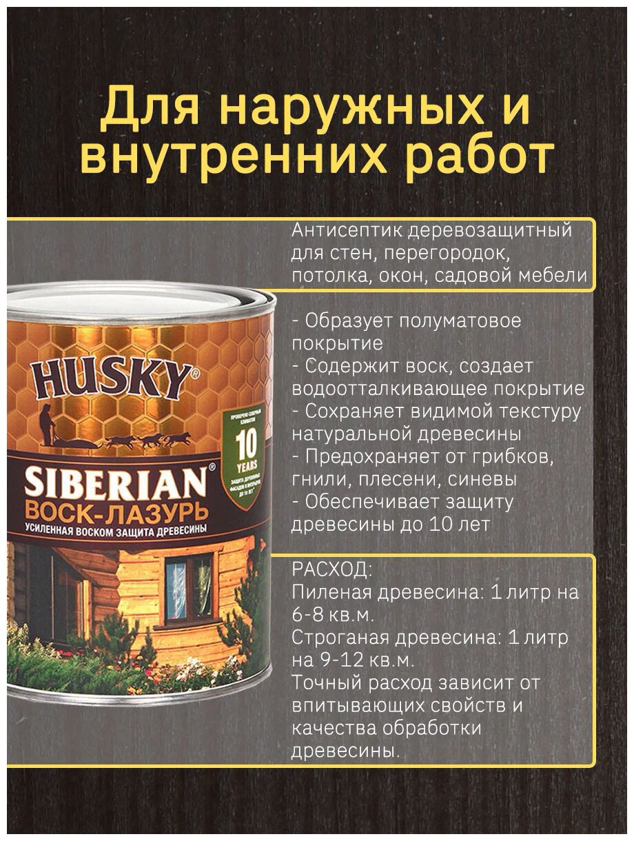 СохранитьHUSKY SIBERIAN Воск-лазурь декоративно-защитный состав для древесины палисандр (0,9л) интересное: