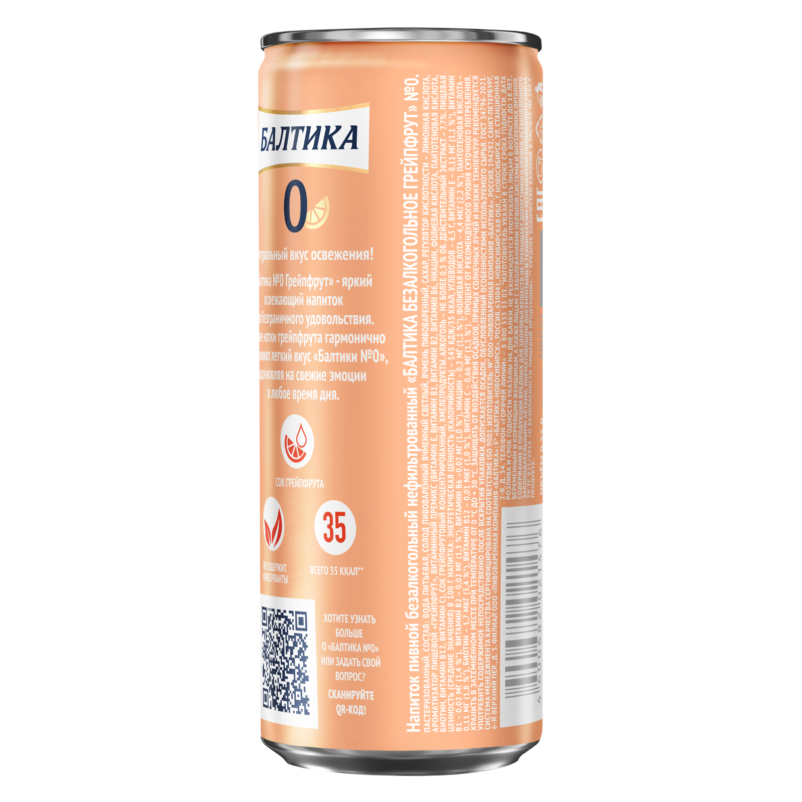 Пивной напиток Балтика №0 Грейпфрут безалкогольное, 24 шт. х 0,33 л, банка интересное: