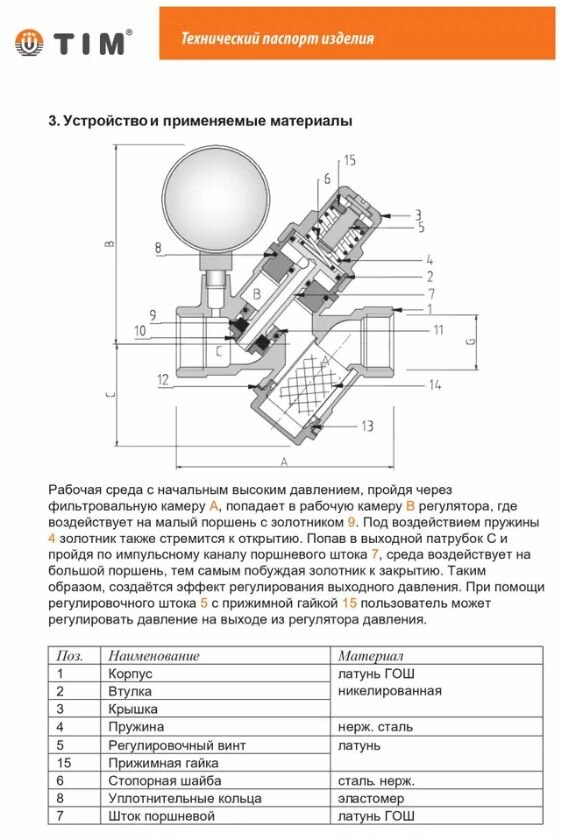 Редуктор давления с фильтром и манометром 1/2, BF2812A TIM Инженерная сантехника