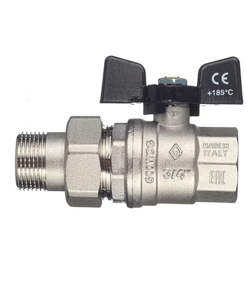 Шаровый кран Bugatti Valvosanitaria "OREGON" 3/4 ВР/НР, муфтовый, с американкой, 2шт