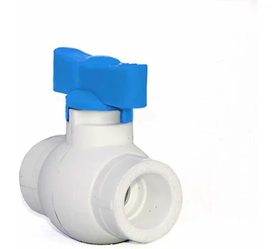 Кран шаровой стандартный проход синяя ручка бабочка PPR 20, белый, RTP