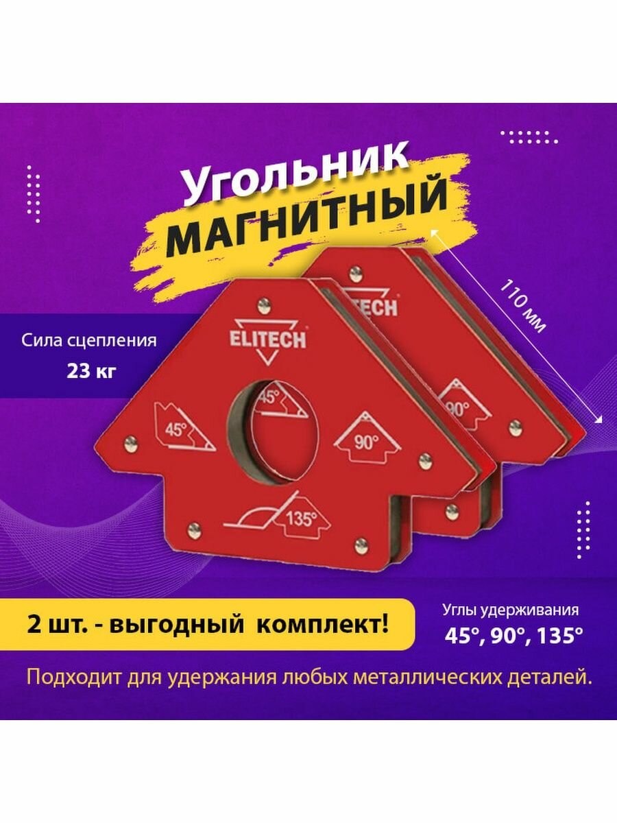 Магнитный уголок для сварки Elitech max 11.5 кг углы 30/45/60/75/90/135