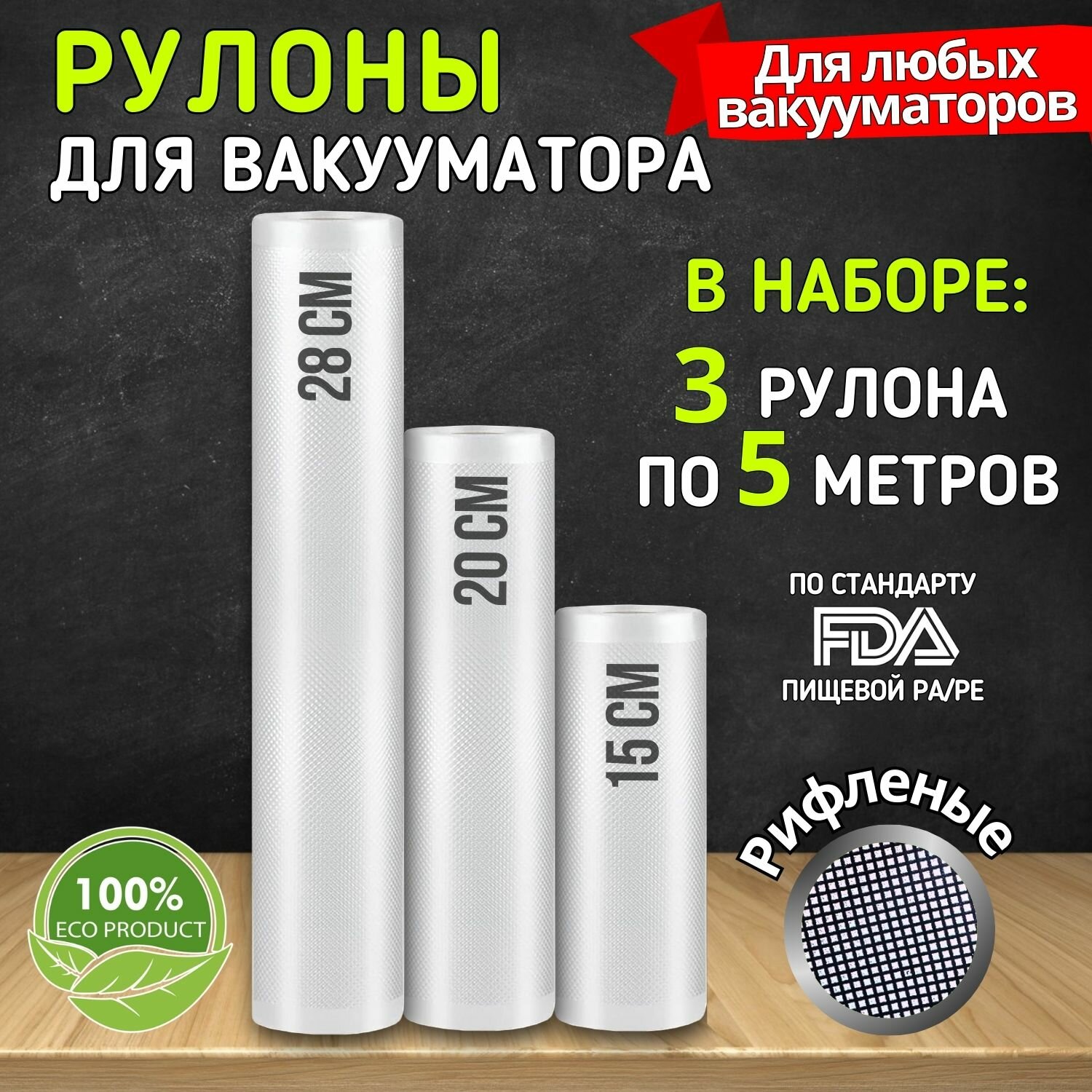 Пакеты для вакууматора рифленые, пленка для вакуумного упаковщика, рулон для заморозки и хранения продуктов набор 12, 15, 20, 25, 28 * 500 см