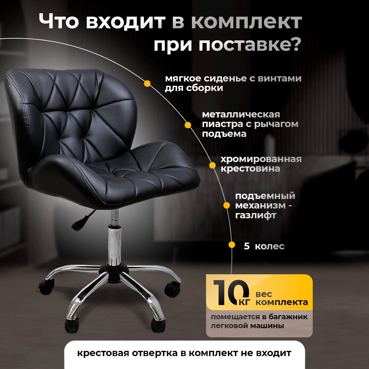 | Подробная комплектация | Мягкая часть, пиастра, газлифт, крестовина, колеса |