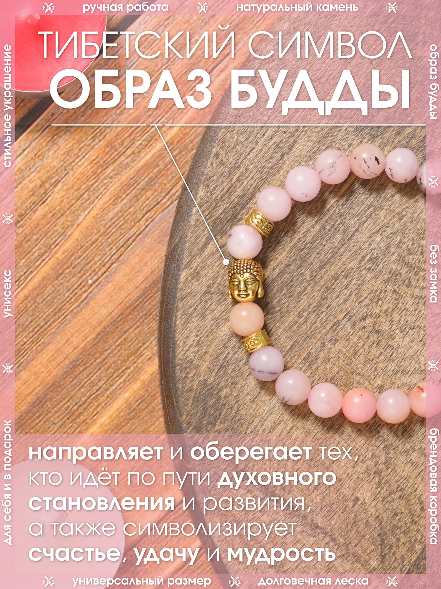 Защитный тибетский браслет Будда из натурального камня Розовый кварц/Охранный оберег-талисман из бусин на руку розовый/Бижутерия для мужчин и женщин