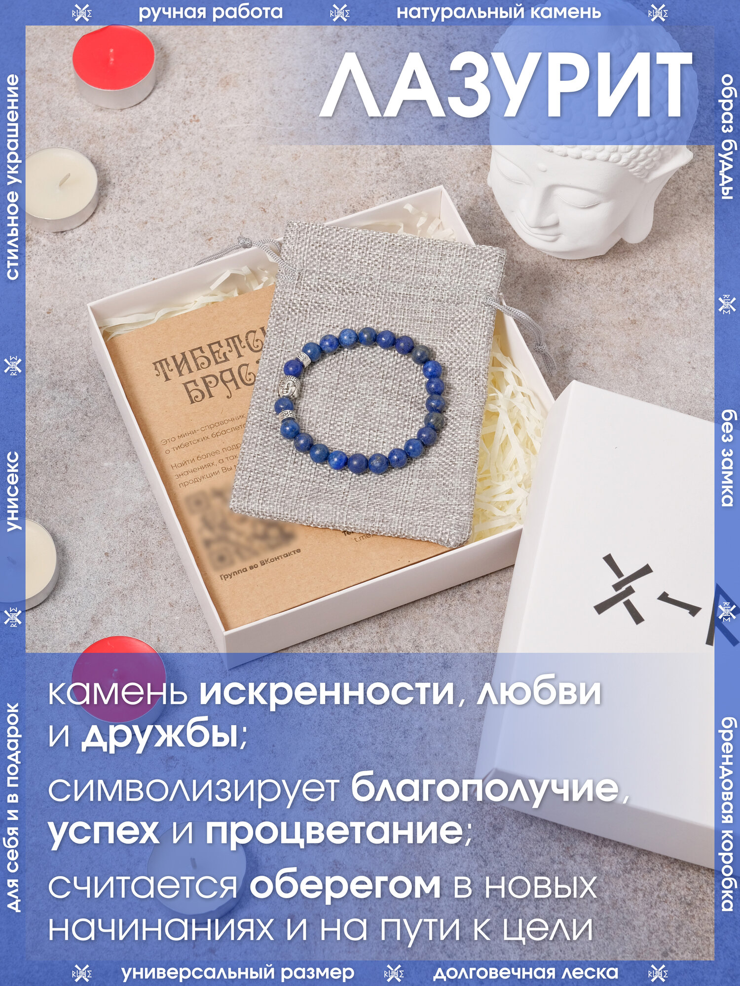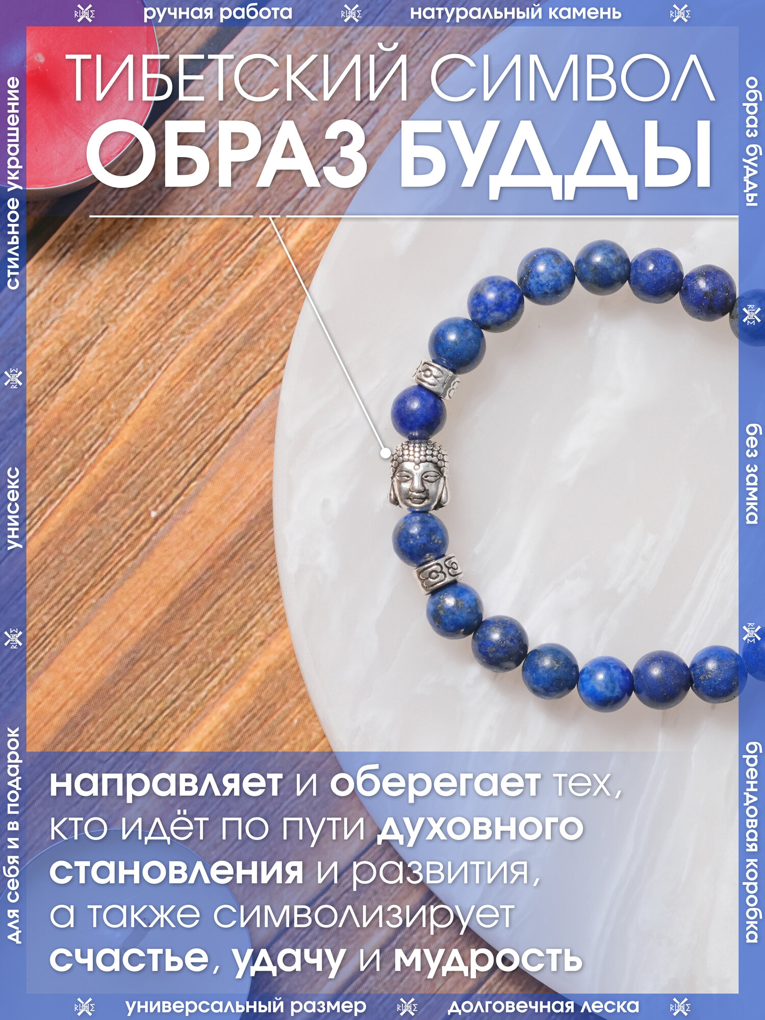 СохранитьБраслет X-Rune, Тибетский браслет с образом Будды из натурального лазурита интересное: