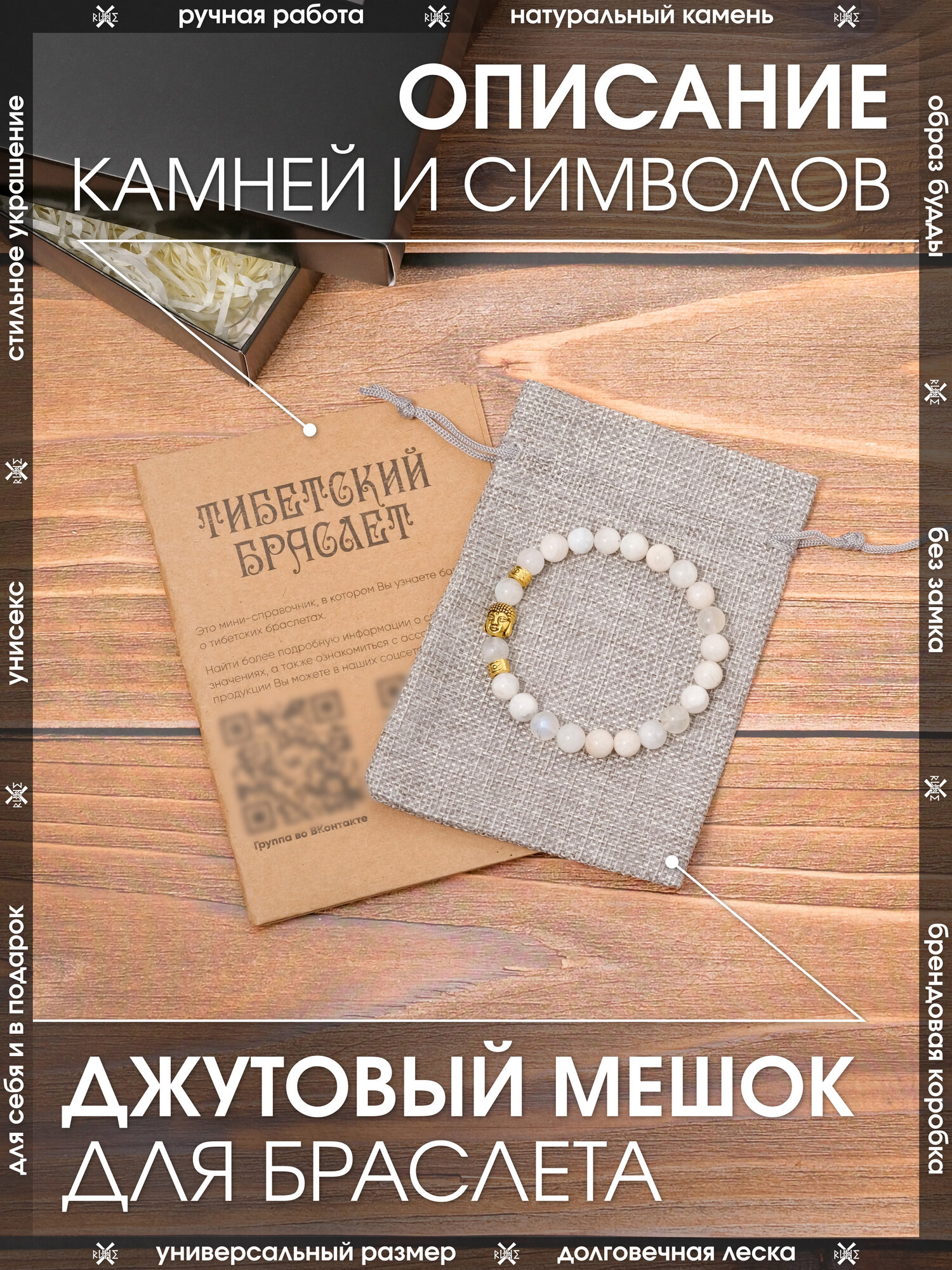 Браслет X-Rune, Тибетский браслет с образом Будды из натурального лазурита