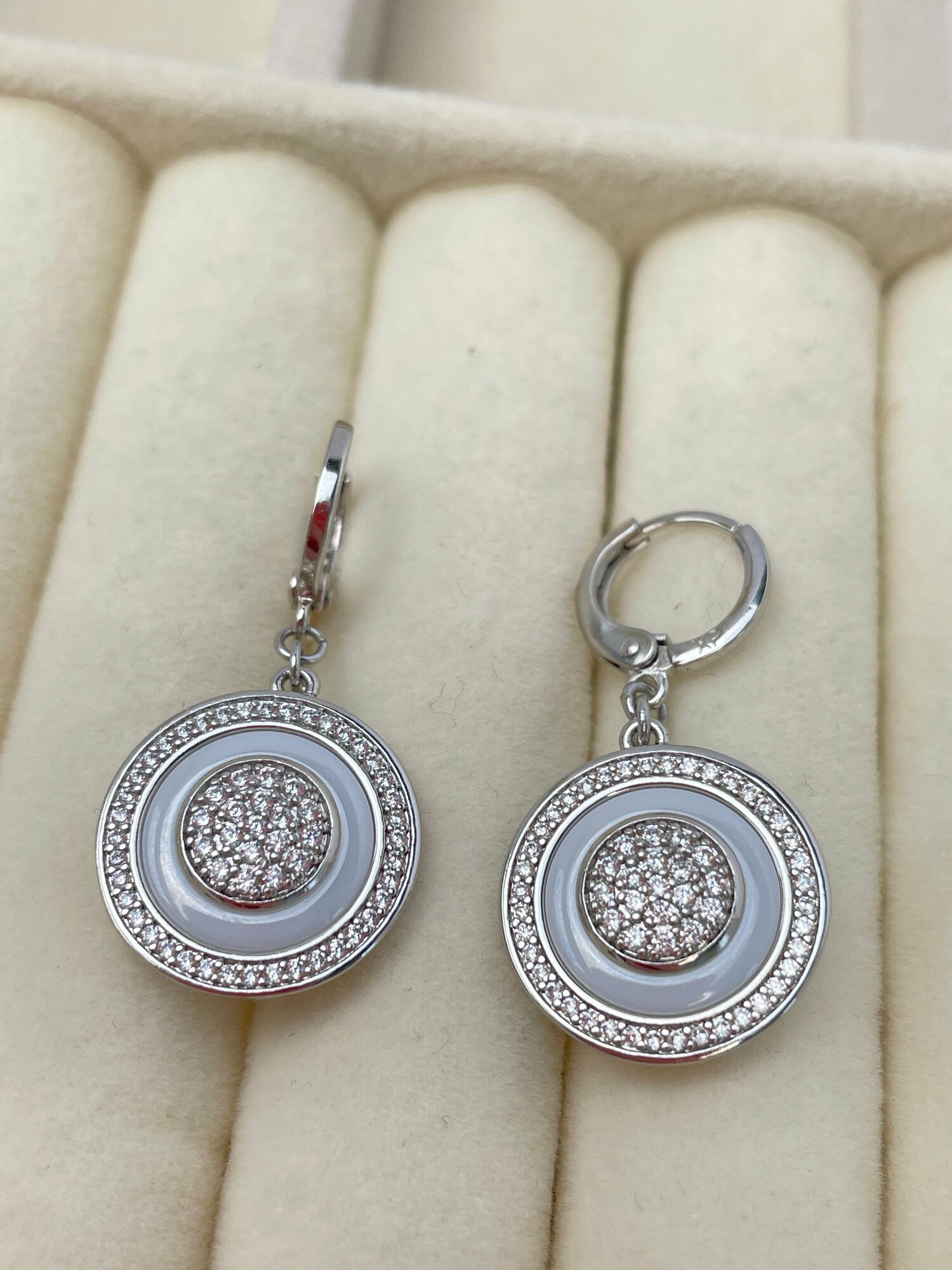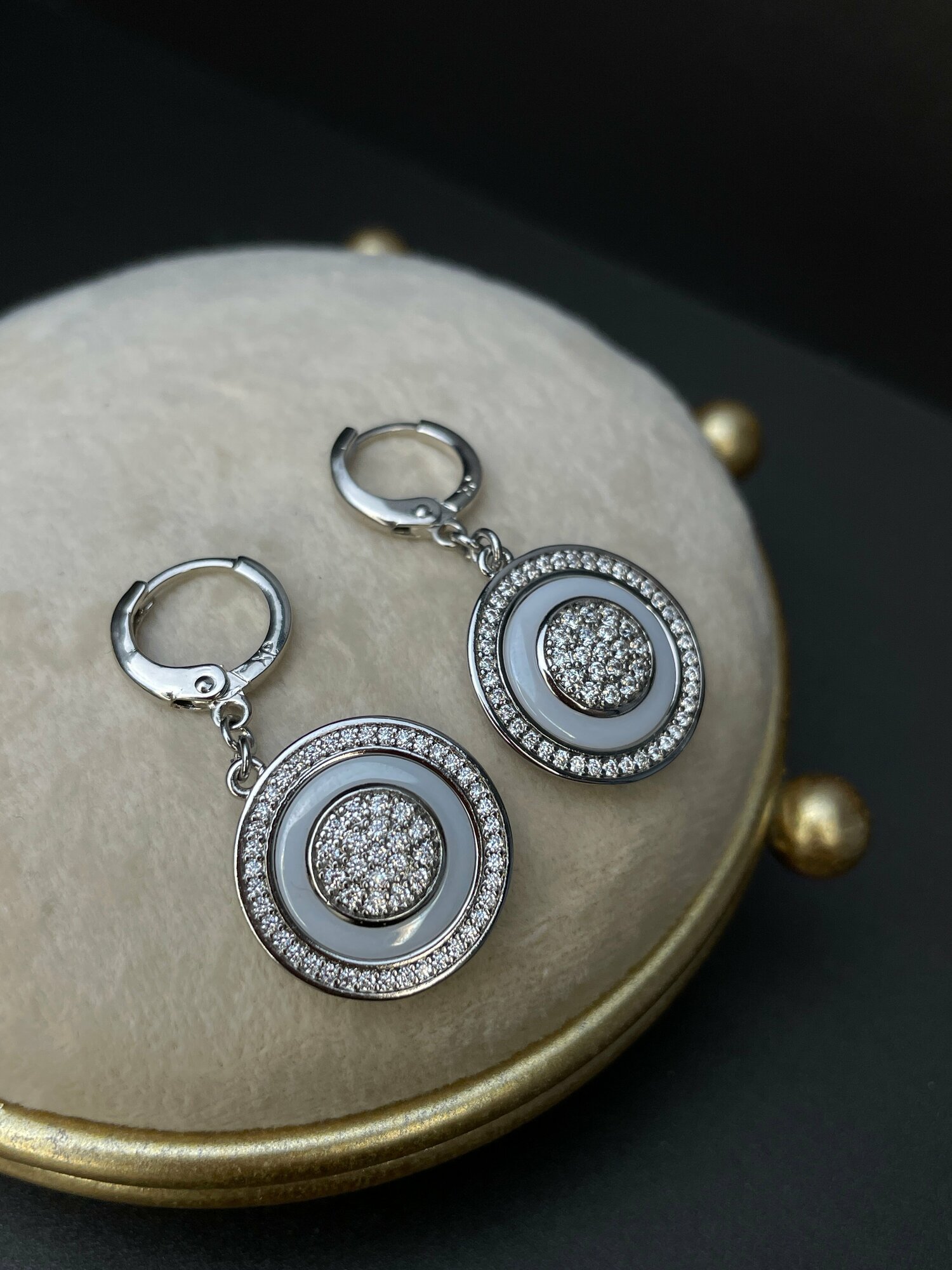 Серьги с подвесками XUPING JEWELRY, циркон, керамика, белый, золотой