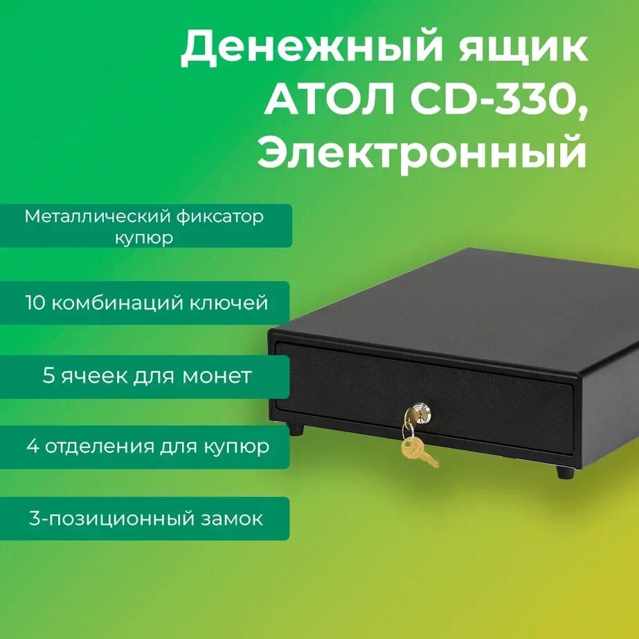 Денежный ящик АТОЛ CD-330, замок электромеханический, с подключением к кассе, черный