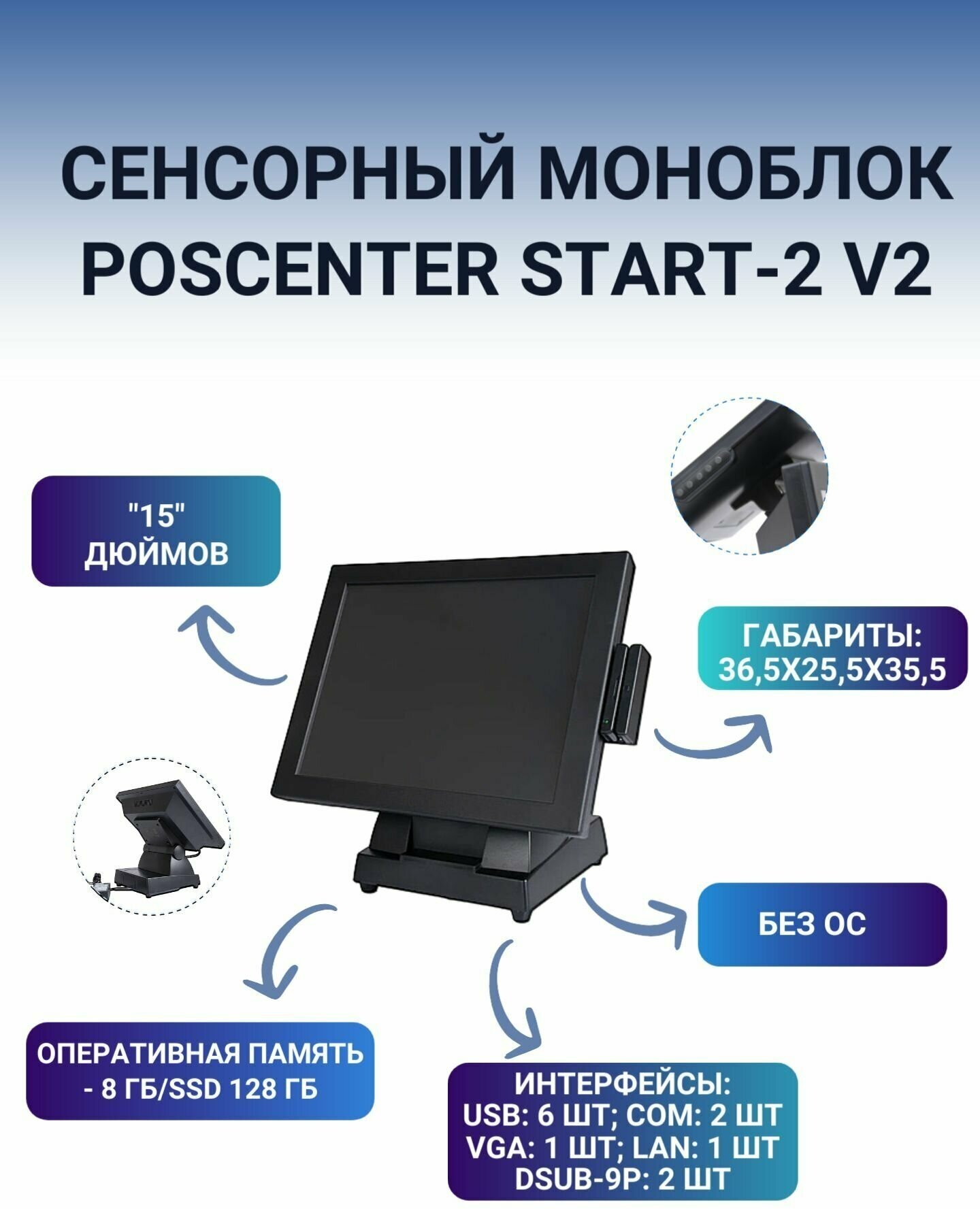 POS-терминал сенсорный POSCenter START-2 V2 (15", Resistive, J3455, RAM 8Gb, SSD 128Gb, MSR) без ОС интересное: