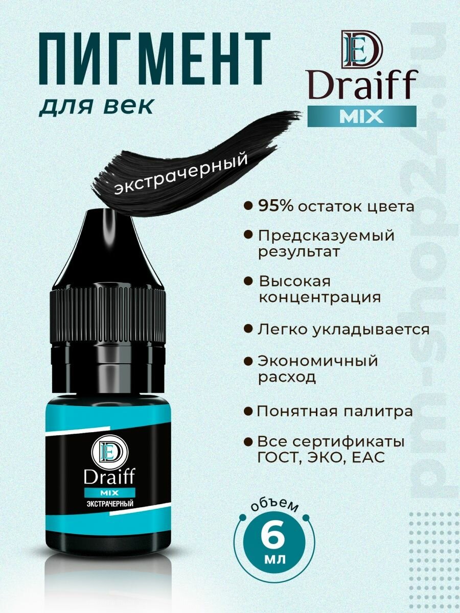 Купить Экстра чёрный Драйф Draiff пигмент для век, 6 мл.