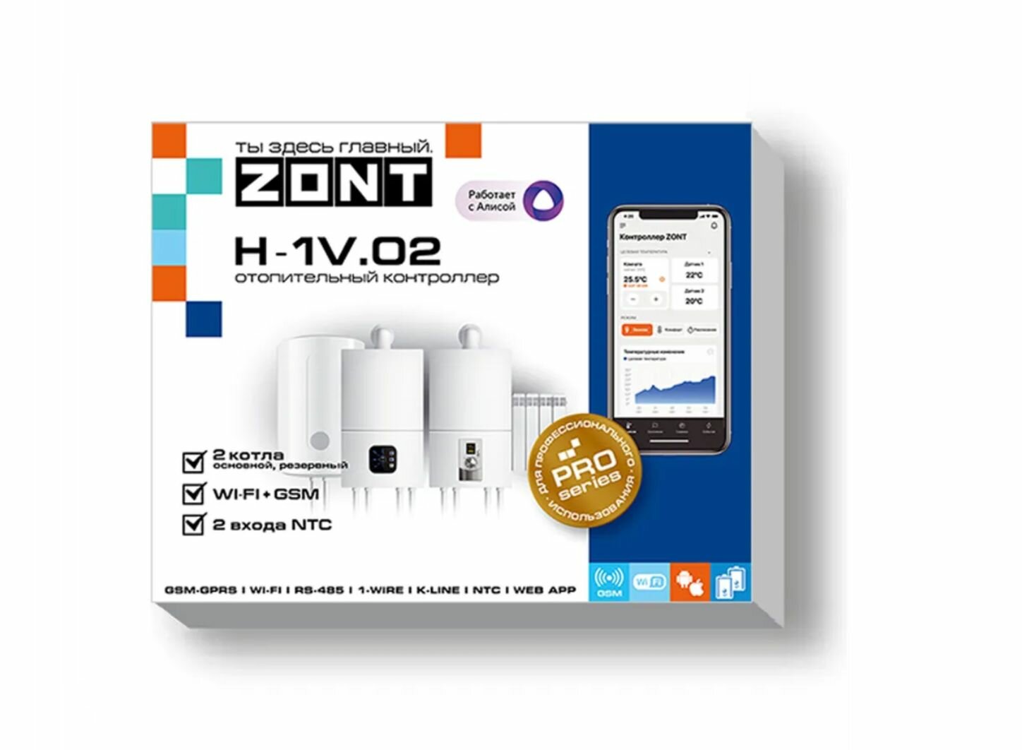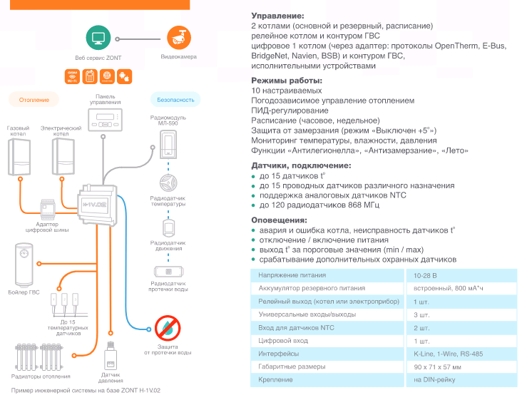 | Протокол связи | 1-Wire / BridgeNet / E-BUS / GPRS / GSM / K-Line / Navien / OpenTherm / RS-485 / Wi-Fi / ZONT |