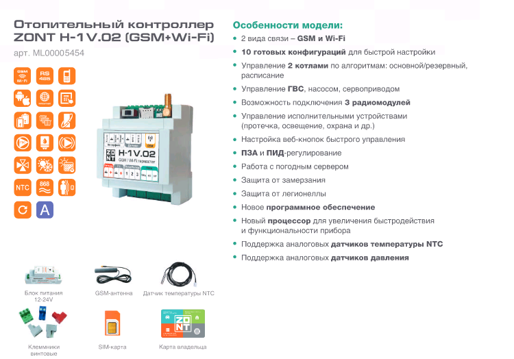 Контроллер универсальный отопительный ZONT H-1V.02 интересное: