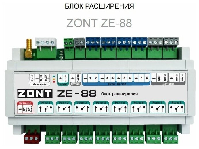 Блок расширения ZE-88 для контроллеров ZONT интересное: