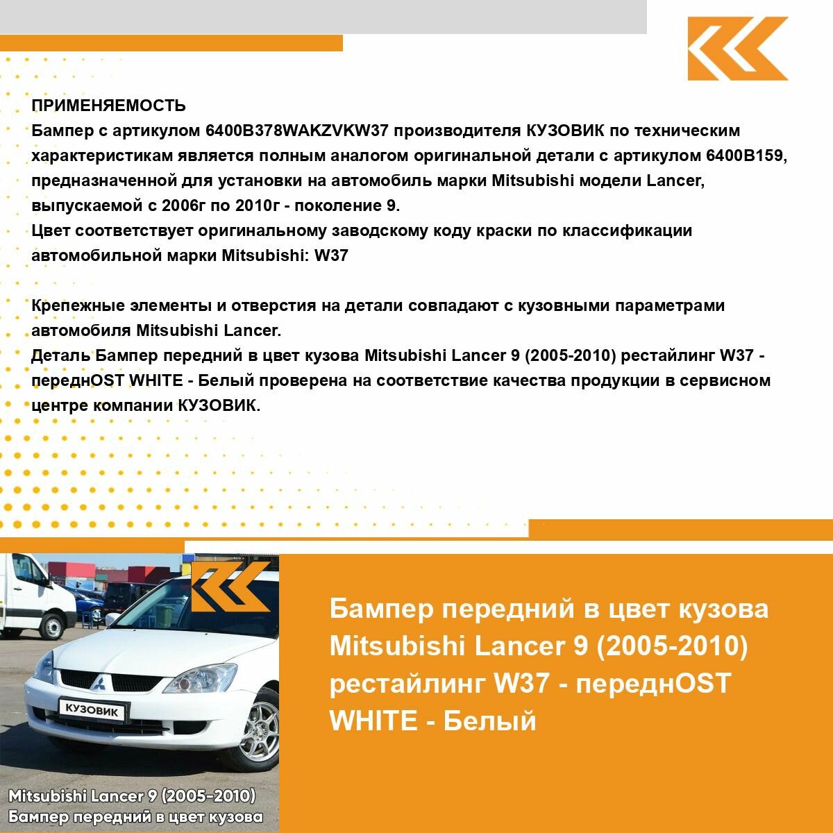 Бампер передний в цвет Mitsubishi Lancer 9 (2005-2010) рестайлинг W37 - переднOST WHITE - Белый