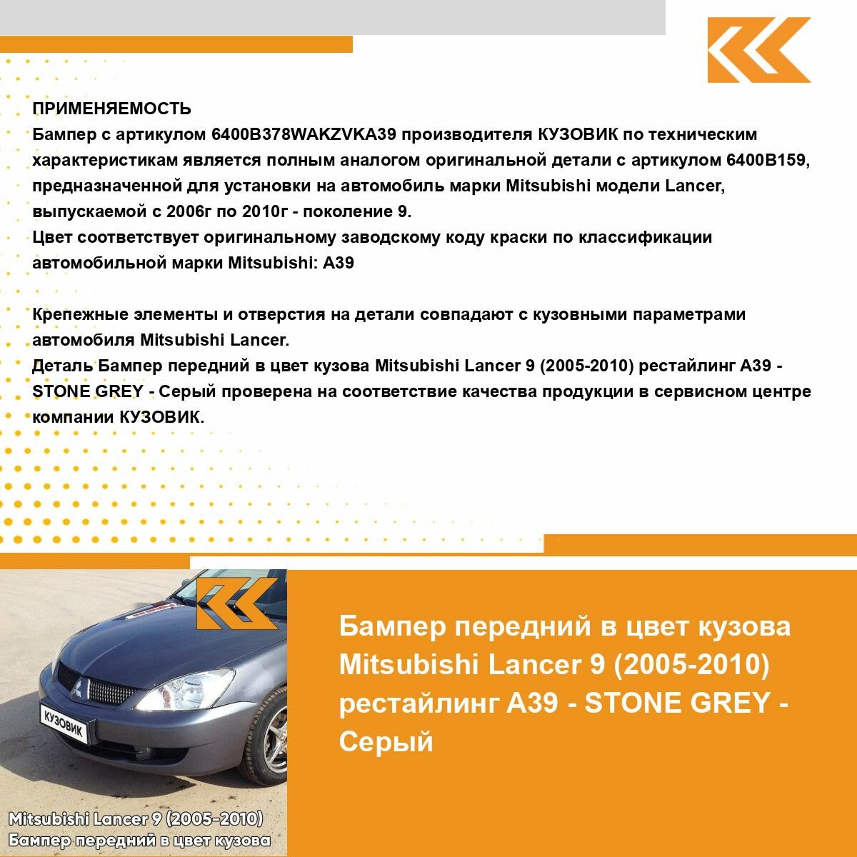 СохранитьБампер передний в цвет кузова Митсубиси Лансер 9 Mitsubishi Lancer 9 (2005-2010) рестайлинг A39 - STONE GREY - Серый интересное: