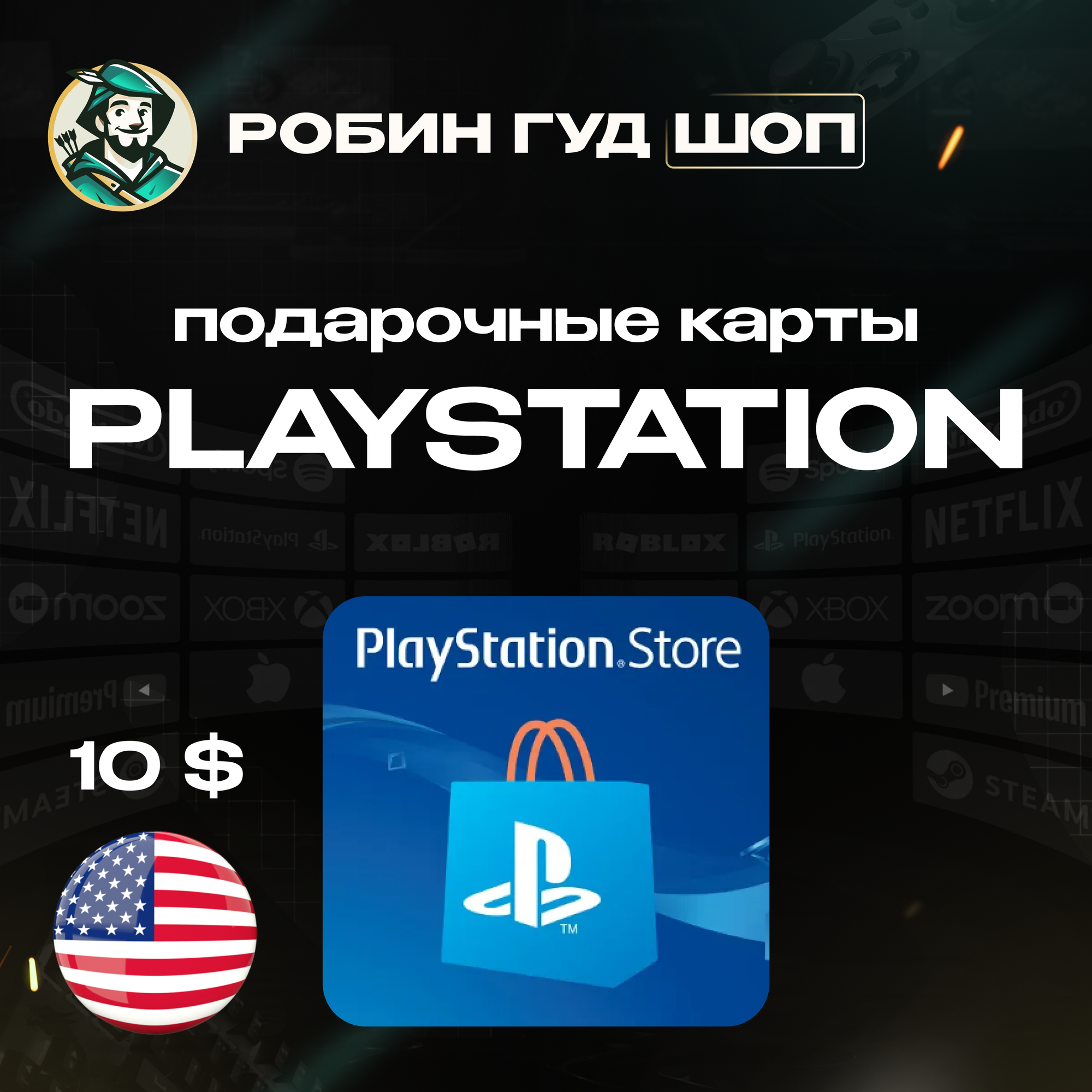 PlayStation подарочная карта США 10 долларов | Gift Card 10$ Можно активировать в России | 100% гарантия работоспособности