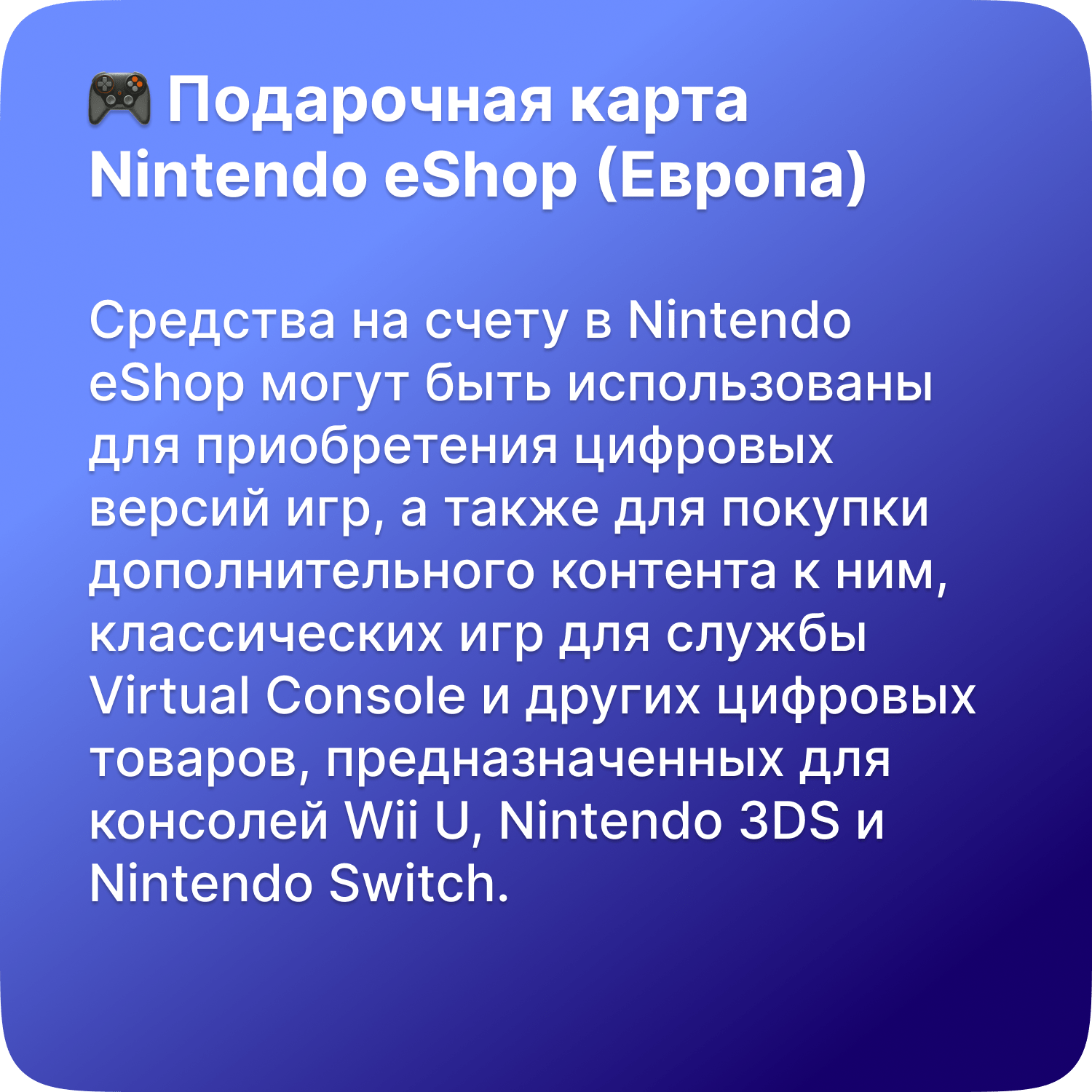 СохранитьКарта пополнения Nintendo eShop 100 Euro, Европа (EU) интересное: