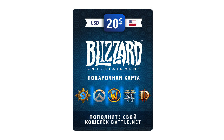 Пополнение счета Blizzard (Battle net) на 20 USD ($) / Код активации Доллары / Подарочная карта Близзард (Батл нет) / Gift Card (США)