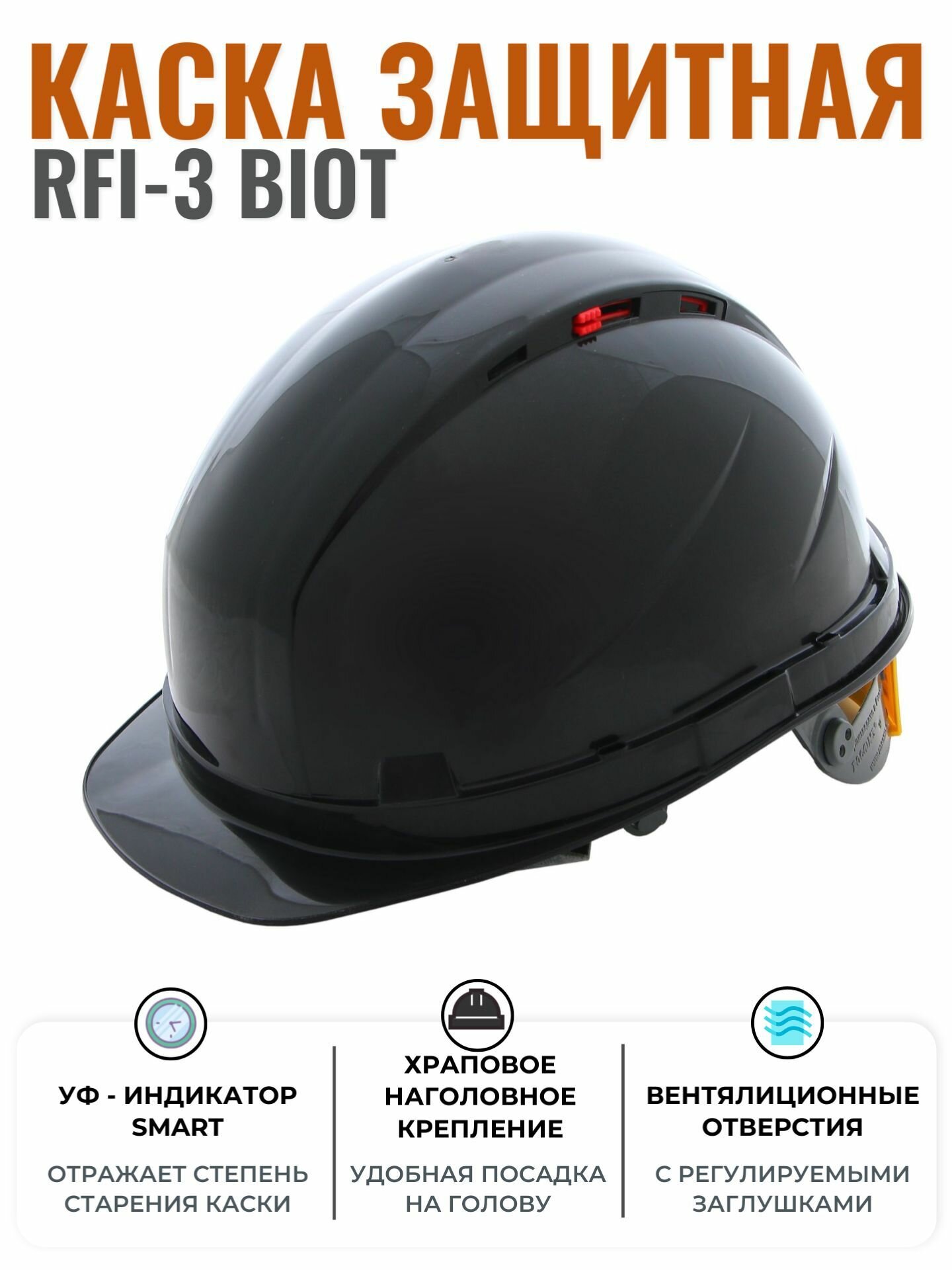 Каска РОСОМ3 RFI-3 BIOT, черная, УФ-индикатор старения каски, храповик