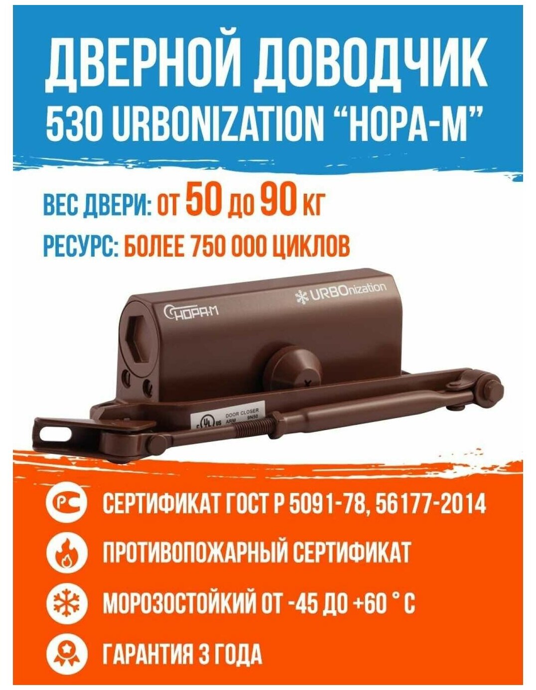 СохранитьДоводчик дверной Нора-М 530 URBOnization (морозостойкий для дверей 50-90кг) - Коричневый интересное: