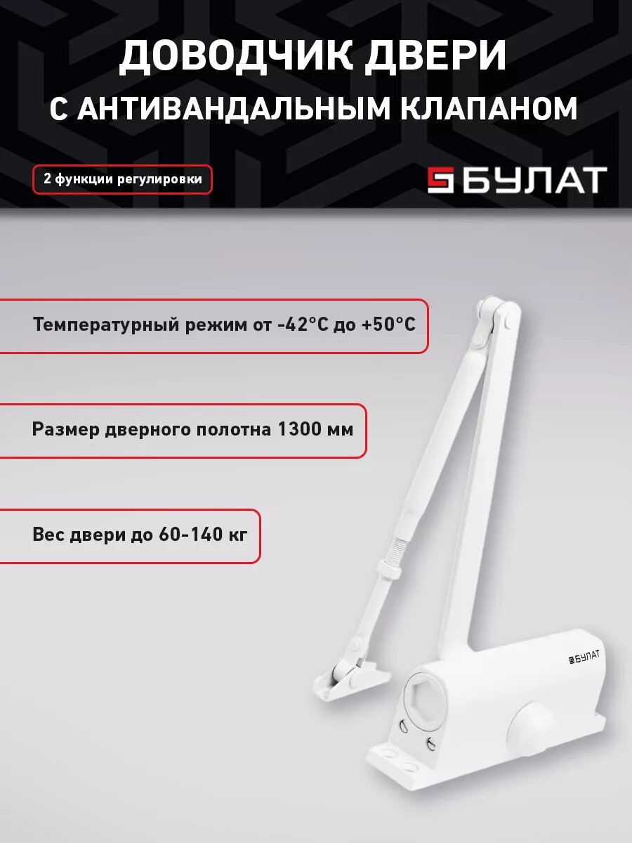 Булат Доводчик дверной ULTIMATE ДД-120 A-W (60-140 кг) белый, морозостойкий(10) zm_14926