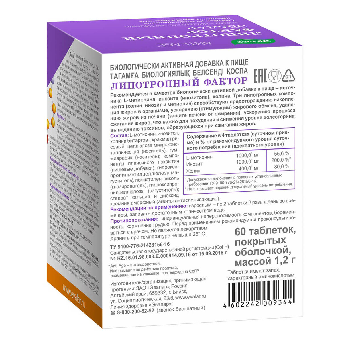 Липотропный фактор, 60 таблеток, Эвалар интересное: