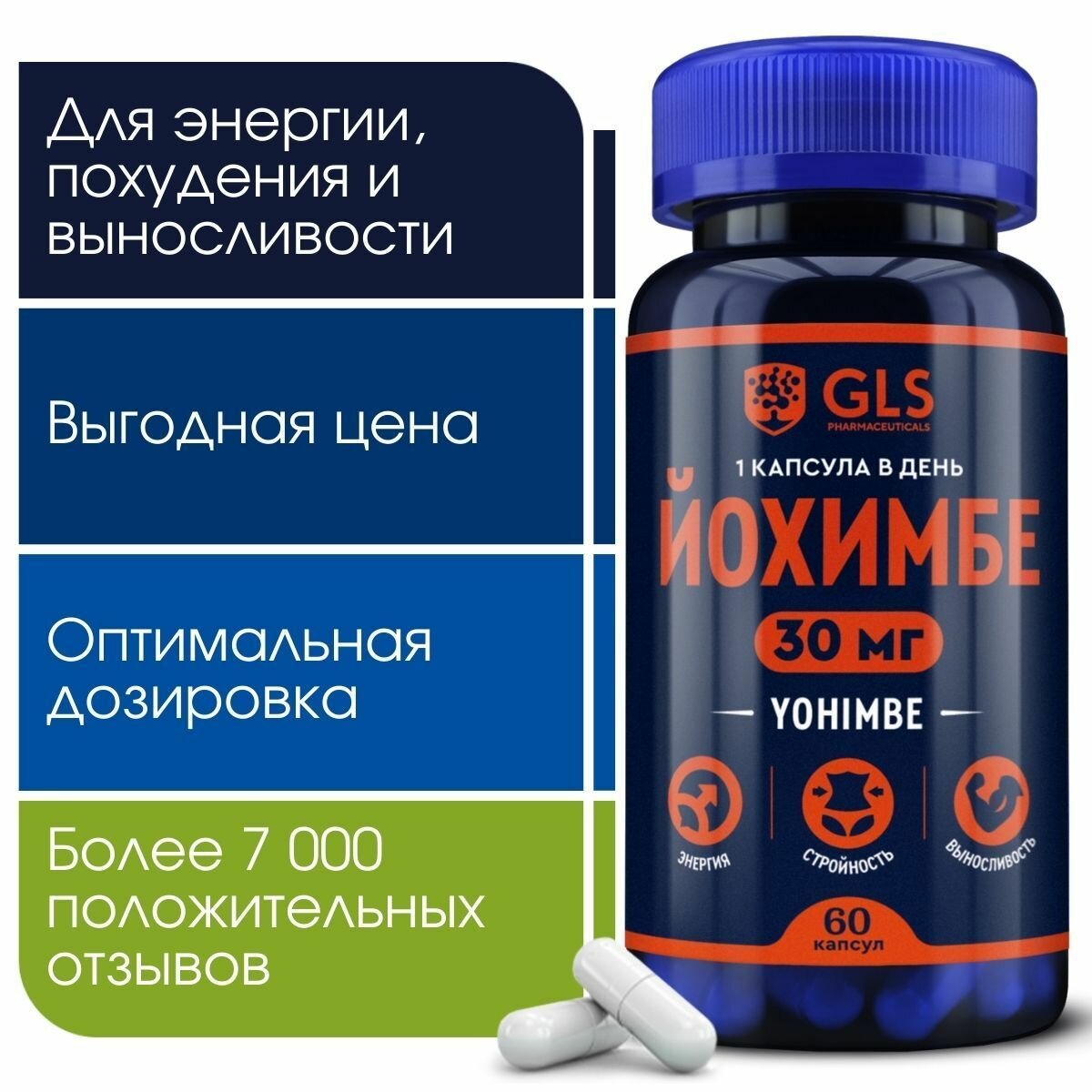 GLS Pharmaceuticals Йохимбе GLS с женьшенем, 60 капсул по 350 мг