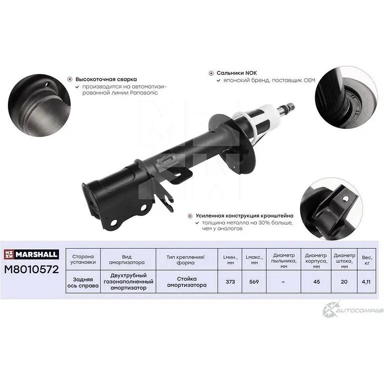 Амортизатор газовый задний правый Marshall M8010572, для Chevrolet, Daewoo