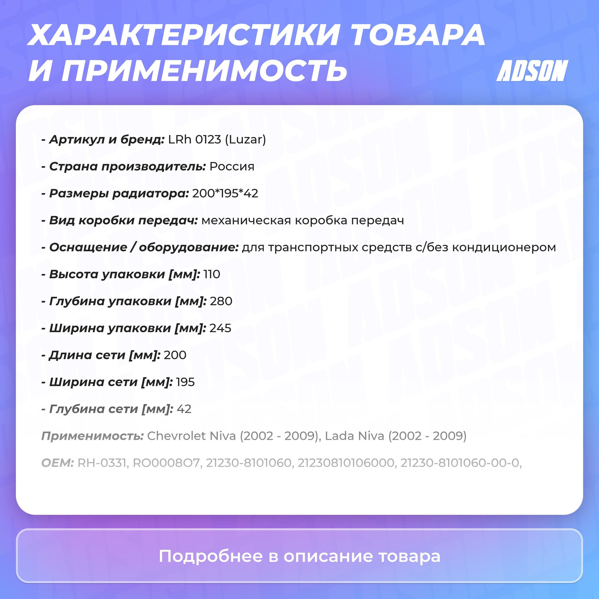 Радиатор отопителя 2123 алюмин. LUZAR LRh 0123 интересное: