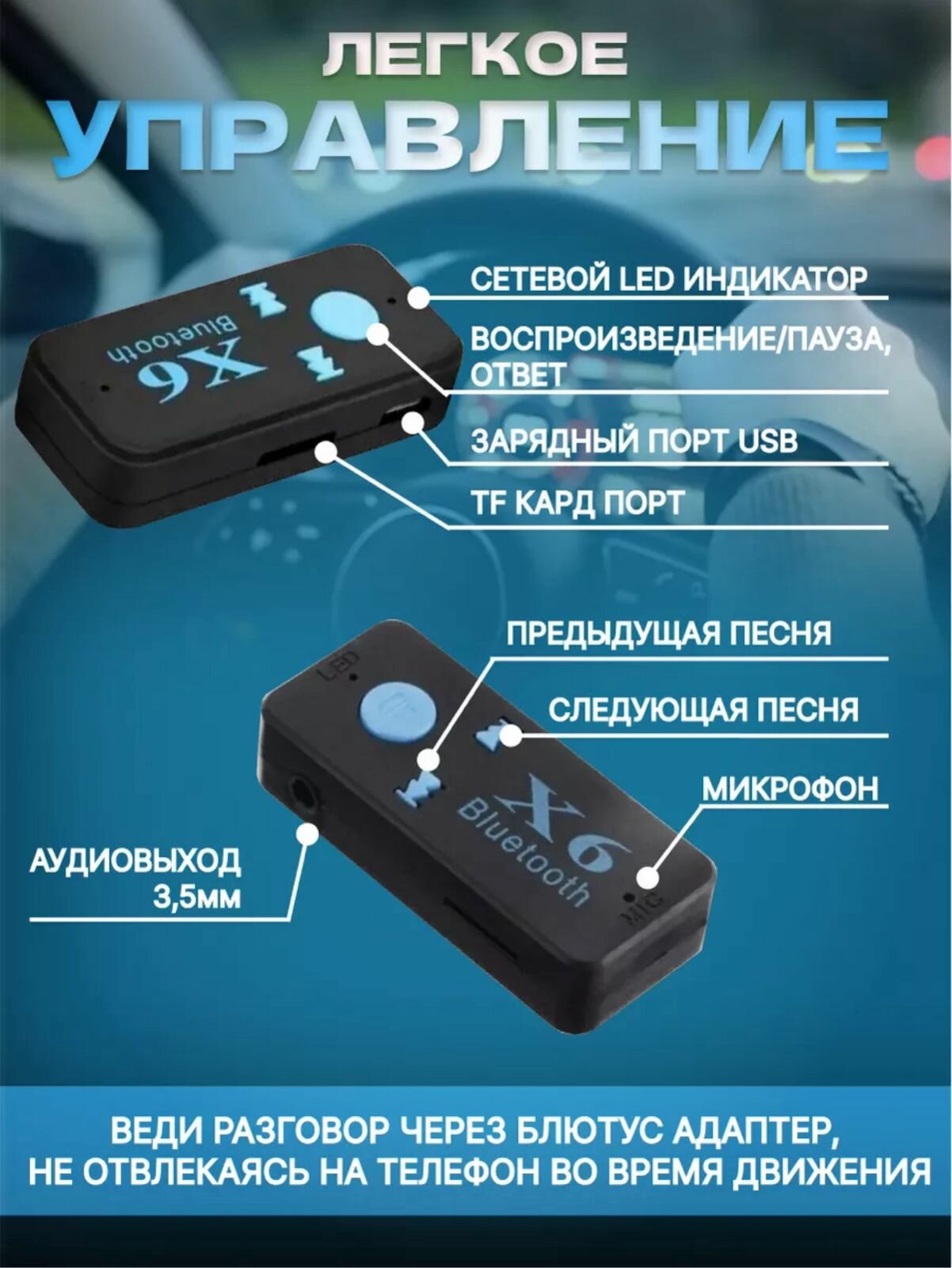 Автомобильный Bluetooth-адаптер JBH X6