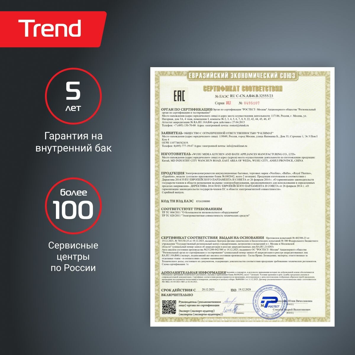 Водонагреватель ROYAL THERMO Trend RWH 80, накопительный, 1.5кВт, 73л, белый [нс-1588136]