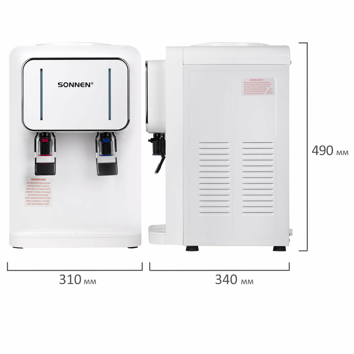 Кулер для воды настольный с нагревом и охлаждением маленький, диспенсер с 2 кранами белый, Sonnen TSE-02W, 456173 интересное: