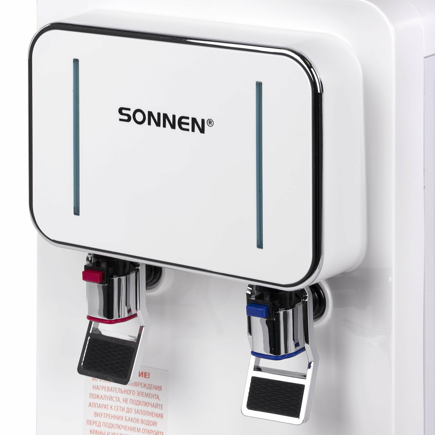 Кулер для воды SONNEN TSE-02W, настольный, нагрев/охлаждение электронное, 2 крана, белый, 456173