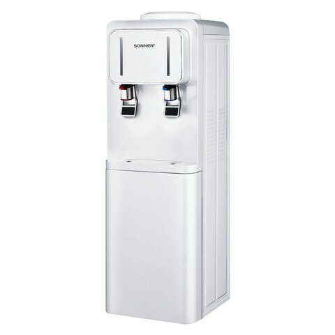Кулер для воды напольный с нагревом и охлаждением, диспенсер с 2 кранами, шкафом белый, Sonnen FSE-02Wc, 456167