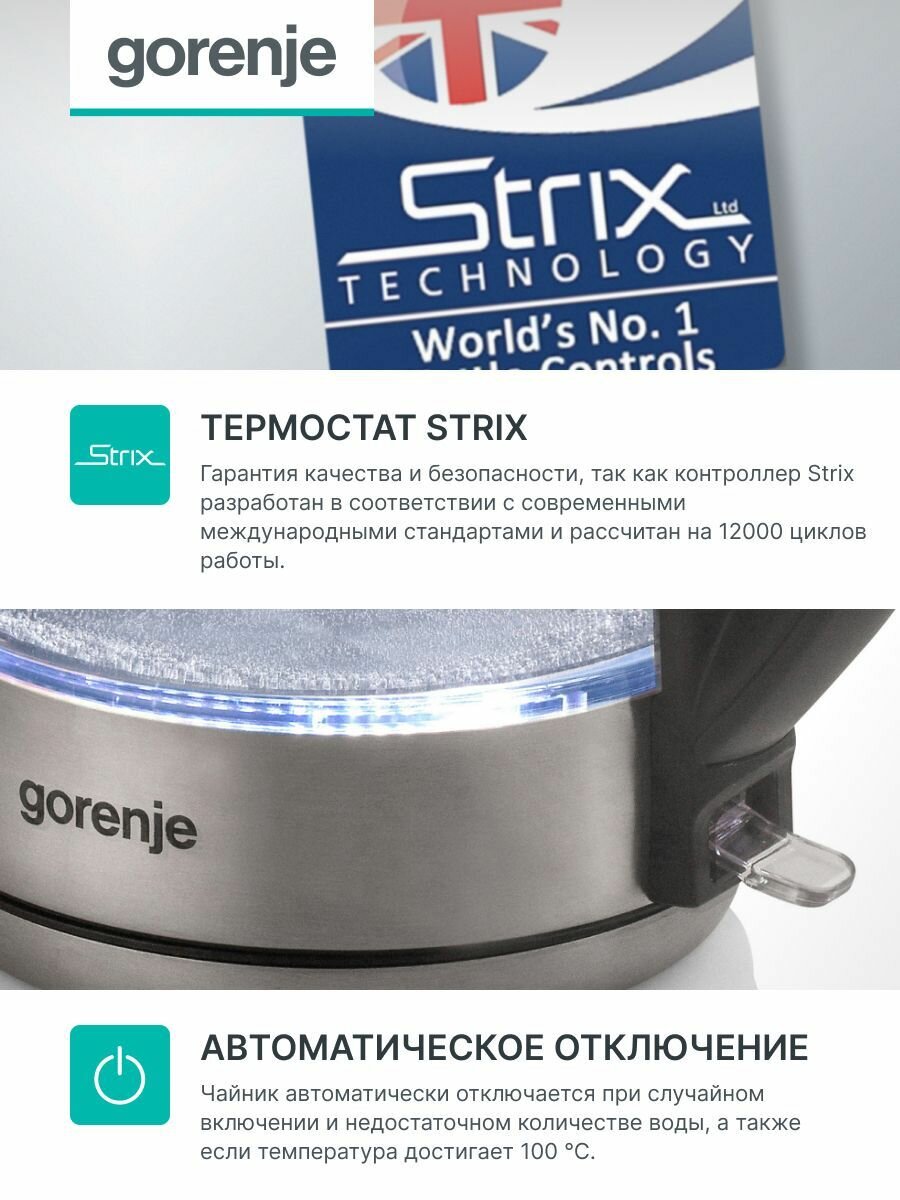 Чайник электрический Gorenje K17GE 1.7л. 2150Вт черный (корпус: стекло)
