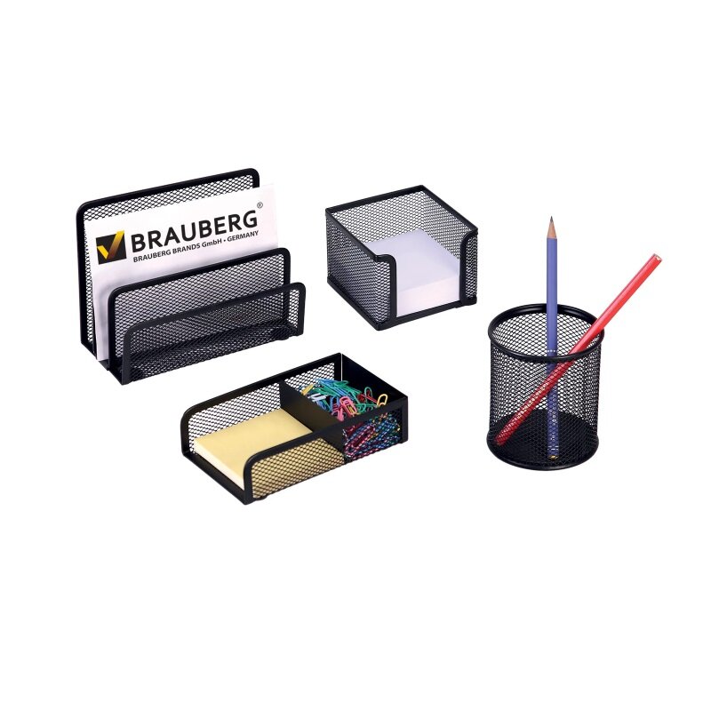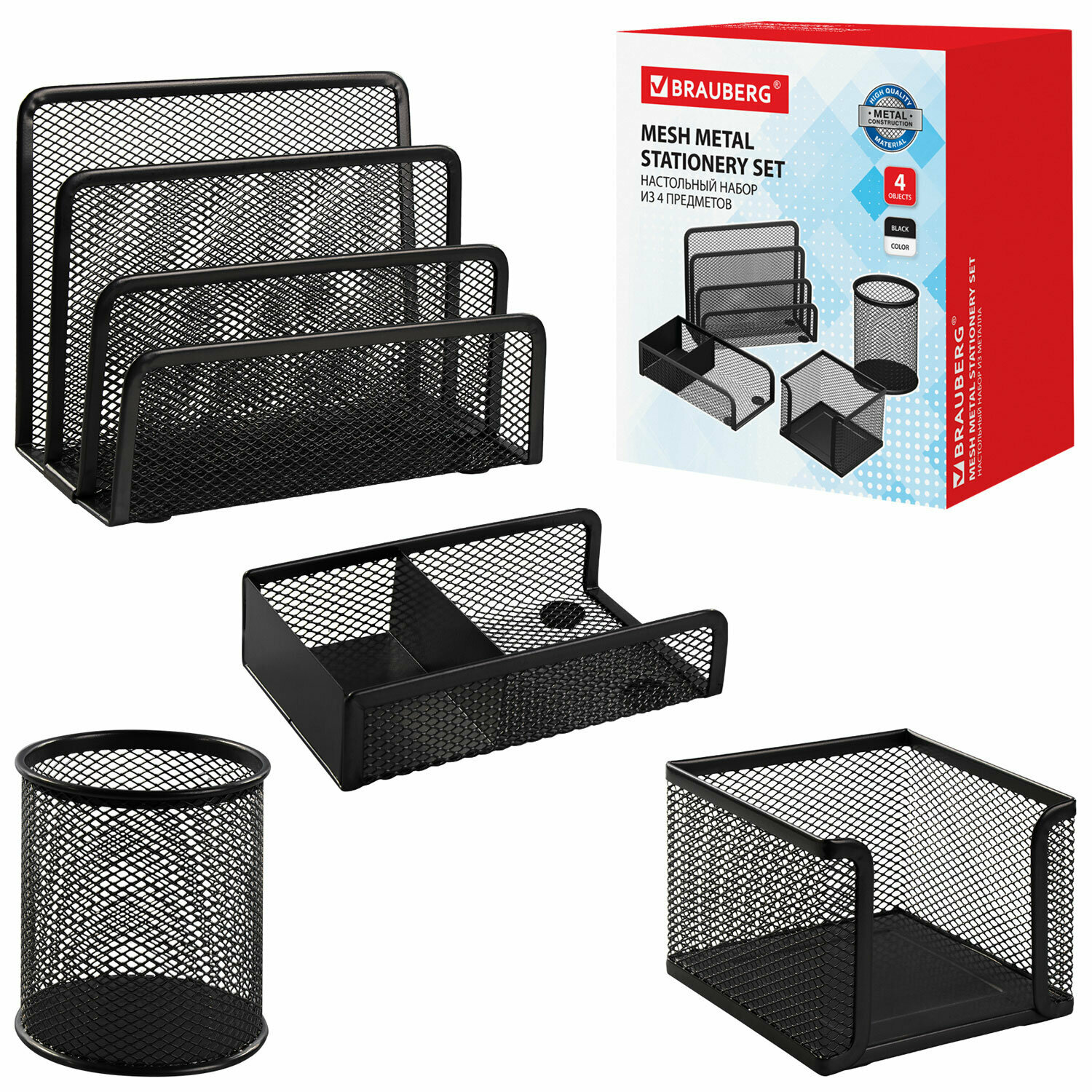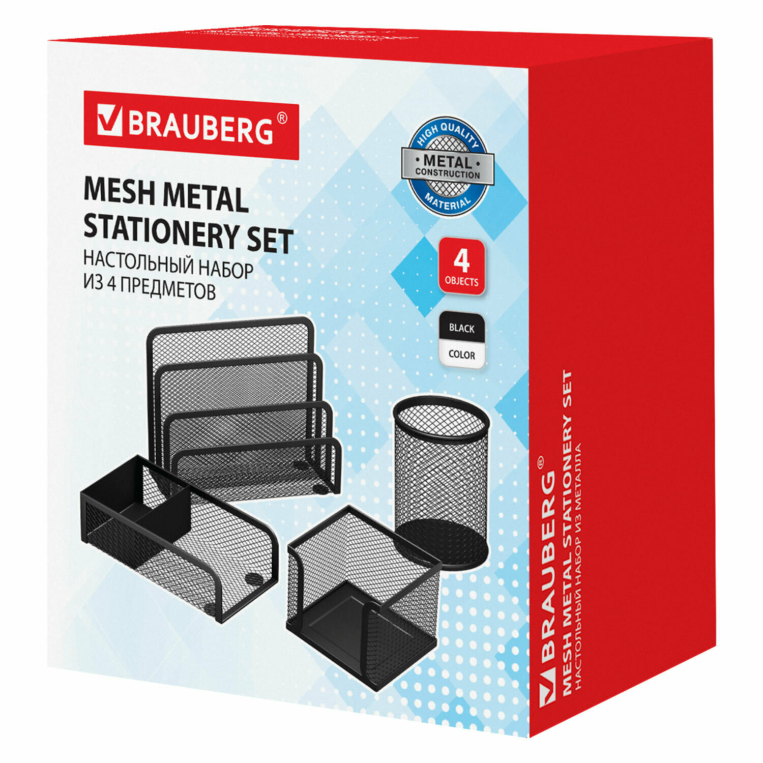 Купить Настольный набор для канцелярии из металла для офиса / дома Brauberg "Germanium" из металла, 4 предмета, черный
