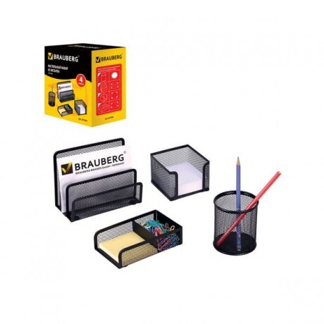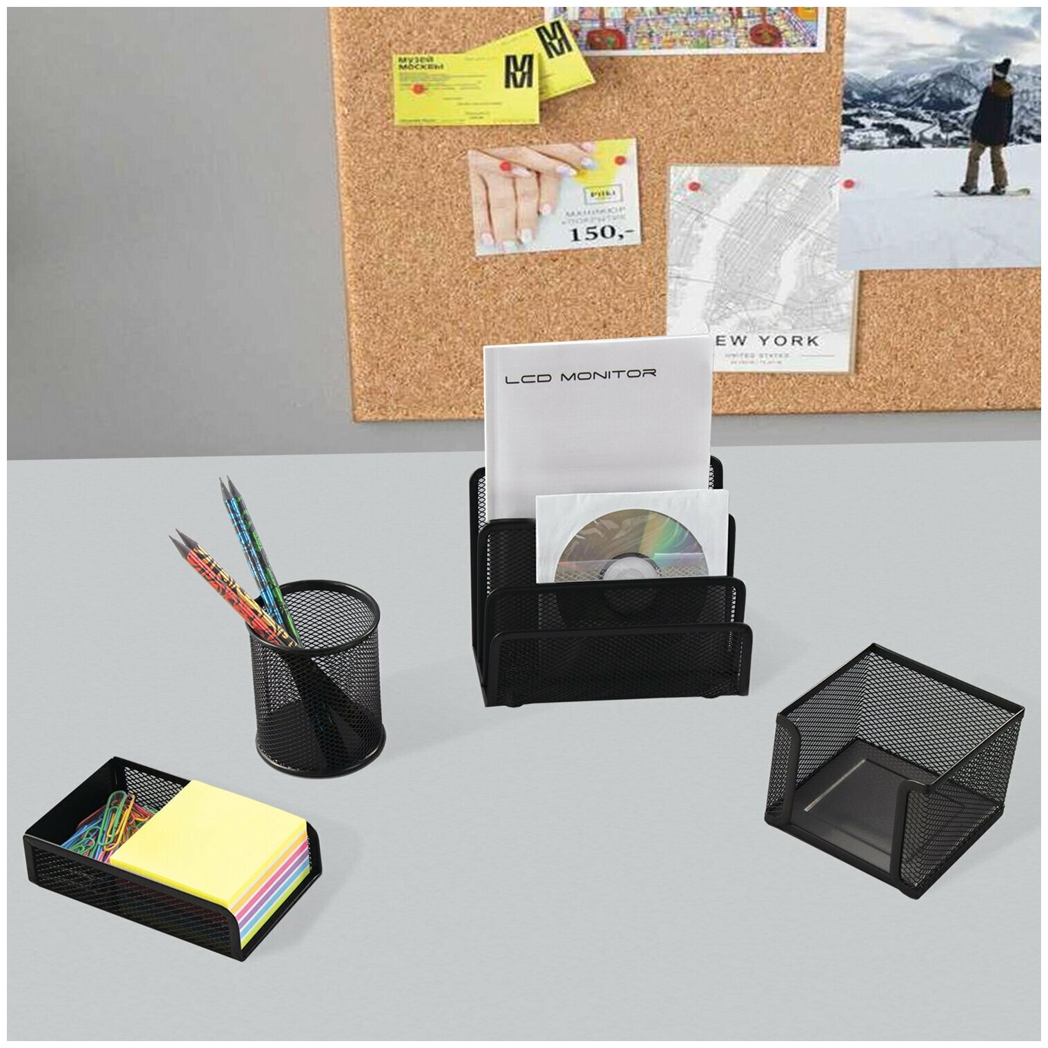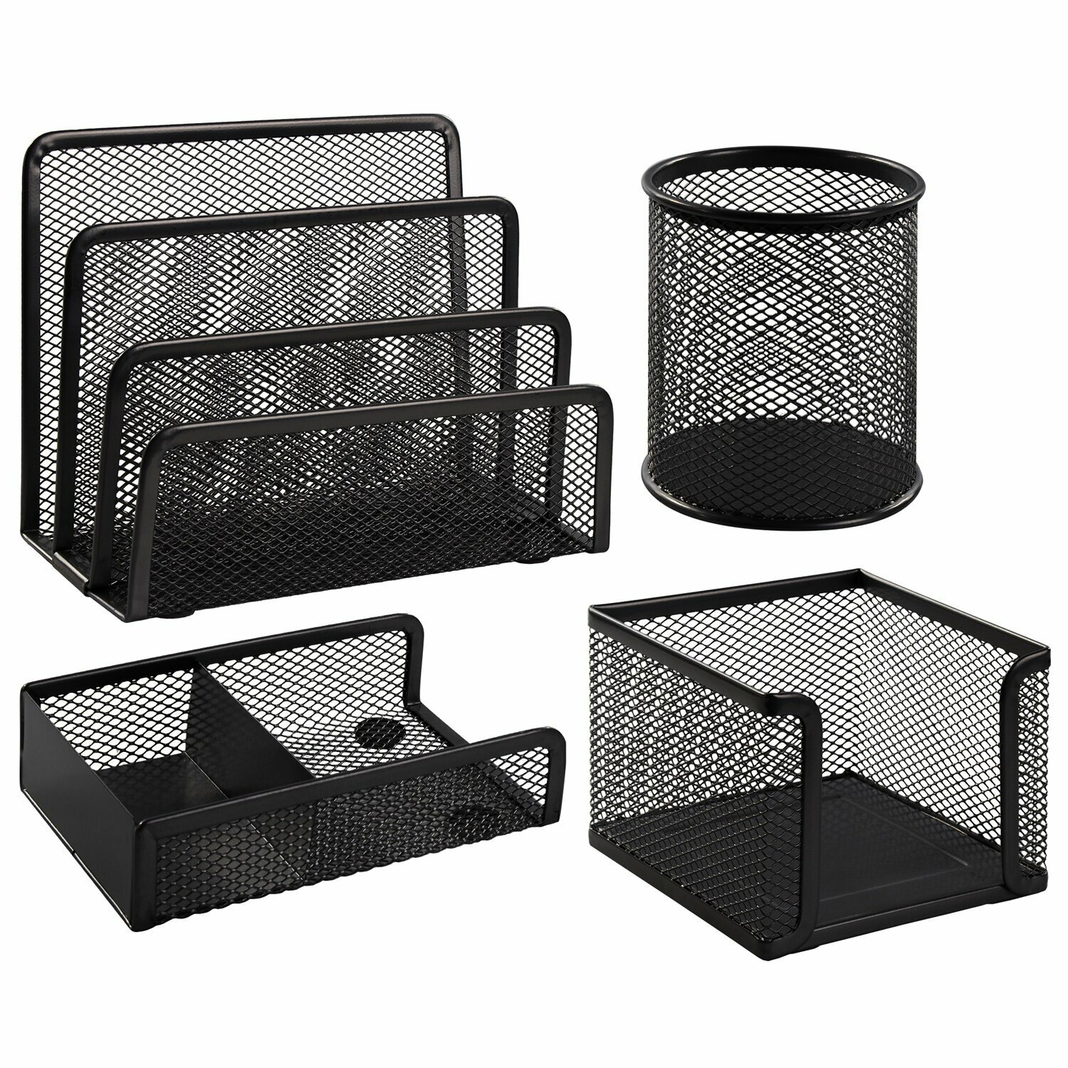 | В комплекте | подставка-органайзер для пишуших принадлежностей, подставка для бумаг и писем 3-х секционная, подставка для бумажного блока размером 100×100 мм, подставка-органайзер 2-х секционная |