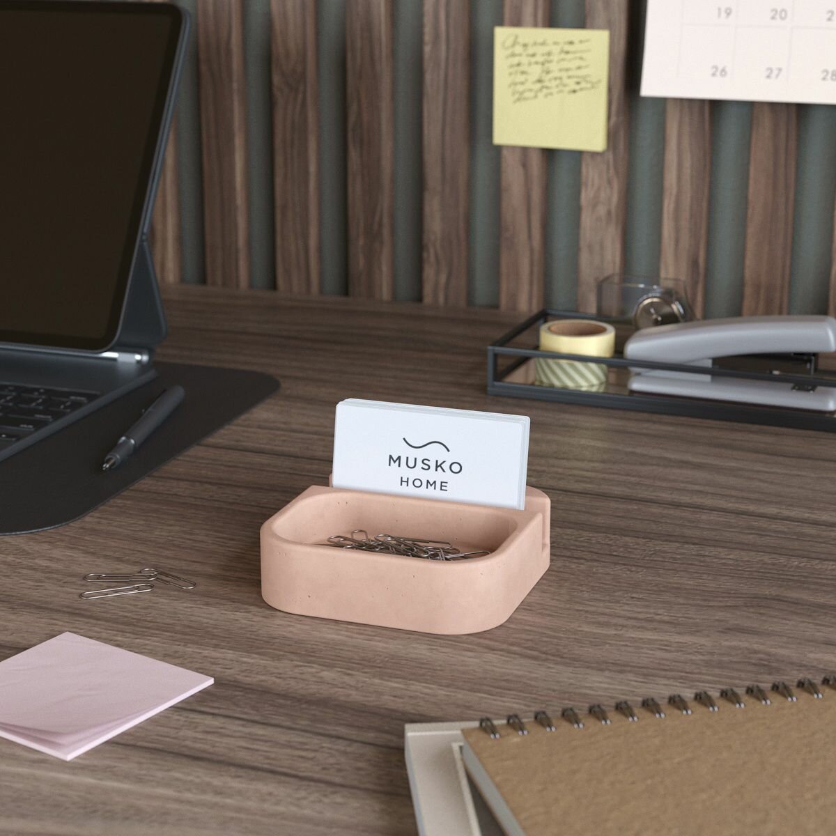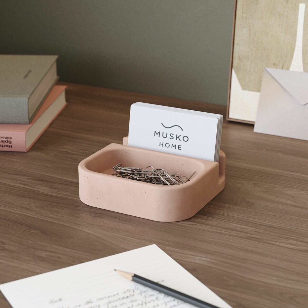 Подставка, держатель для визиток Oliver, визитница, бетон, розовая матовая интересное: