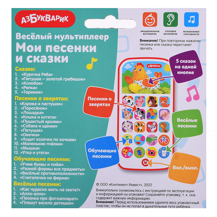 Мультиплеер "Мои песенки и сказки", на блистере 22,5x13x1,5 см